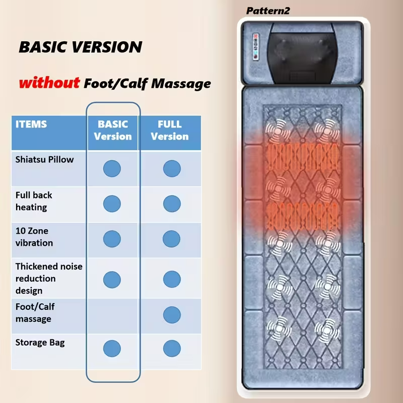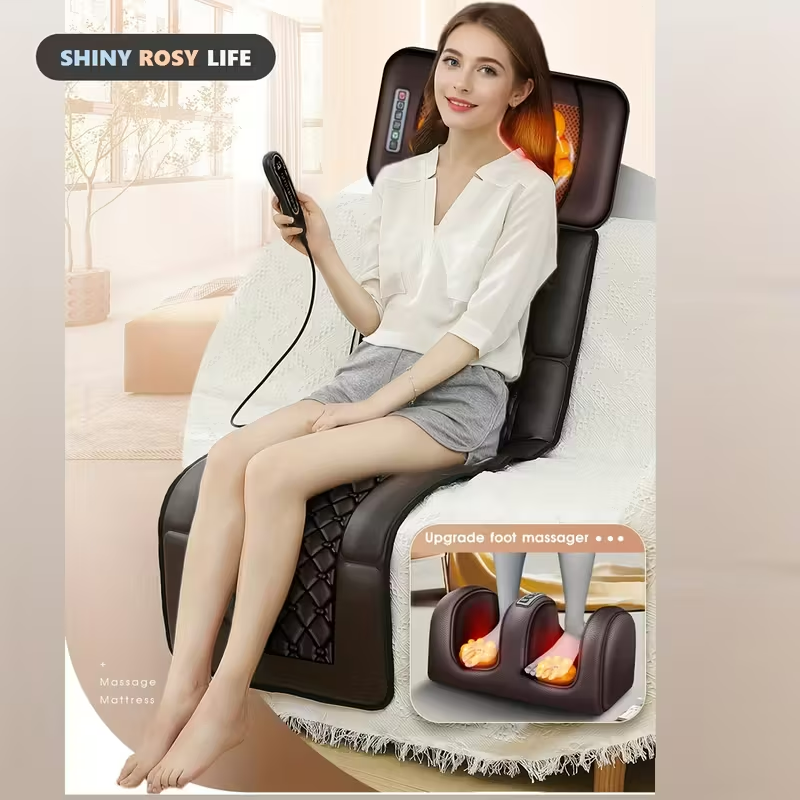 Transform any chair, couch, or bed into a full-body massage station with this 10-zone massage pad. Featuring targeted vibration, kneading massage points, and optional heat, it helps relieve tension from your neck, back, thighs, and calves. Lightweight but powerful, this pad is perfect for home, office, or travel. Key Features: 10 massage zones: neck, back, buttocks, thighs, calves Wave-vibration and kneading massage modes Optional heating function to soothe muscles Adjustable intensity / speed settings Easy to use and install on most chairs or flat surfaces Compact design, folds up for storage Includes remote control for easy mode changes Package Includes: 10-zone massage pad Remote control Power adapter User manual Why Buy: Great for daily stress relief, muscle recovery, or enhancing relaxation at home. A thoughtful gift and practical wellness tool.