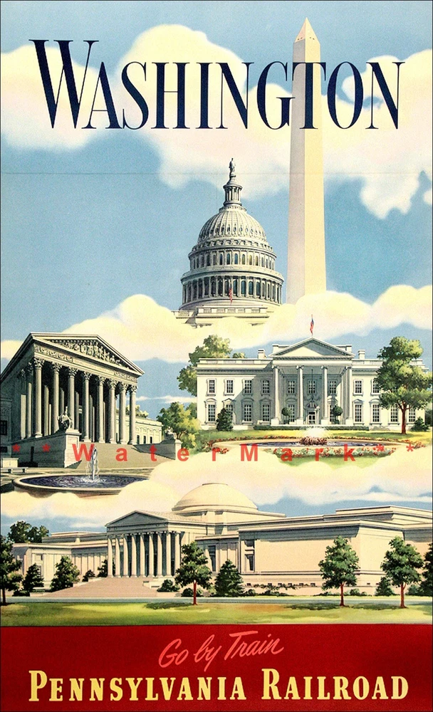 Washington DC 1935 US Capitol Pennsylvania Railroad Tourism Vintage Poster Print Retro Style Restored Art ***We offer Free US Postage or Reduced Postage for Canada & Worldwide. **No charges for additional prints worldwide. ***These are not framed or stretched or mounted NOTE:**Delivery dates shown are only "Suggested" Order Early To Avoid Post Delay Dramas **Read Please: The print looks best with a nice mat (passe - partout or passepartout ) and frame. These prints are the exact proportion as the original and will not be stretched to fit the paper or canvas...this would cause a distorted print The image will be the exact aspect ratio as per the original poster, so there might be more white on the top and bottom, or side to side. Options available..use the drop-down menu * Watermark will not be on your image. *Cloth Canvas an artist canvas used also in museums and art galleries *Photo Gloss Paper is a high-quality Professional Photo paper *Matte Photo Paper is a great solution if you do not want a Gloss, this paper is great with colors *Luster Photo Paper this photo paper is neither glossy or matt. Glossy paper has a smooth texture, luster paper is slightly textured. This option is a good choice for something in between Metallic, Photo Gloss and Matte *Metallic Pearlescent Photo Paper is a very high-quality paper with a Pearlescent sheen, a glossy finish, and unique metallic appearance, these prints have extra visual interest and depth. This paper uses a combination of film laminate layers that produce striking, dimensional, lasting images on an ultra-bright background. The effect is sometimes described as "chrome on paper." This is NOT a metal plaque, it is a photo paper This poster print will be shipped in a sturdy container. We will ship usually within 24 business hours of payment, except for weekends or US Holidays If there is a question, please do contact me All is done to send you the best quality poster image. Don't forget to check out the Sales. There is a great Buy 3 Get 1 Free Offer!! Shipped with no extra postage..Worldwide! There are a variety of reasons why the images on your monitors don't match each other. The simplest is that each monitor is different; even monitors with the same model won't have colors that match up perfectly We are located and ship only from the USA The art is not AI generated, these are restored prints from originals
