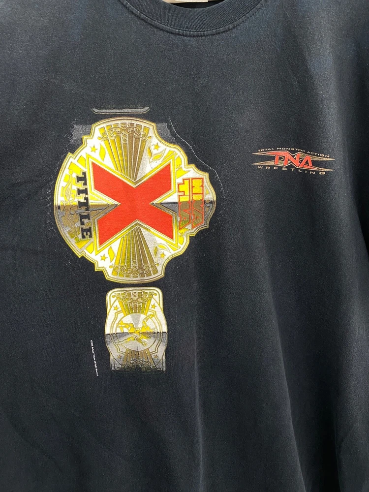 Vintage 2003 TNA Wrestling T-Shirt Y2K Jef Hardy Sting Rare Condition: color loss, picture cracked Size: XL/XXL Color: Black Measurements Chest: 66 cm Length: 78 cm Shoulders: 62 cm 👁Please see all photos👁 Usual delivery time ~ 2/3 weeks Be sure to check out all the other great items in my store. Discounts and offers are always available. Feel free to send me a message with your question. :)