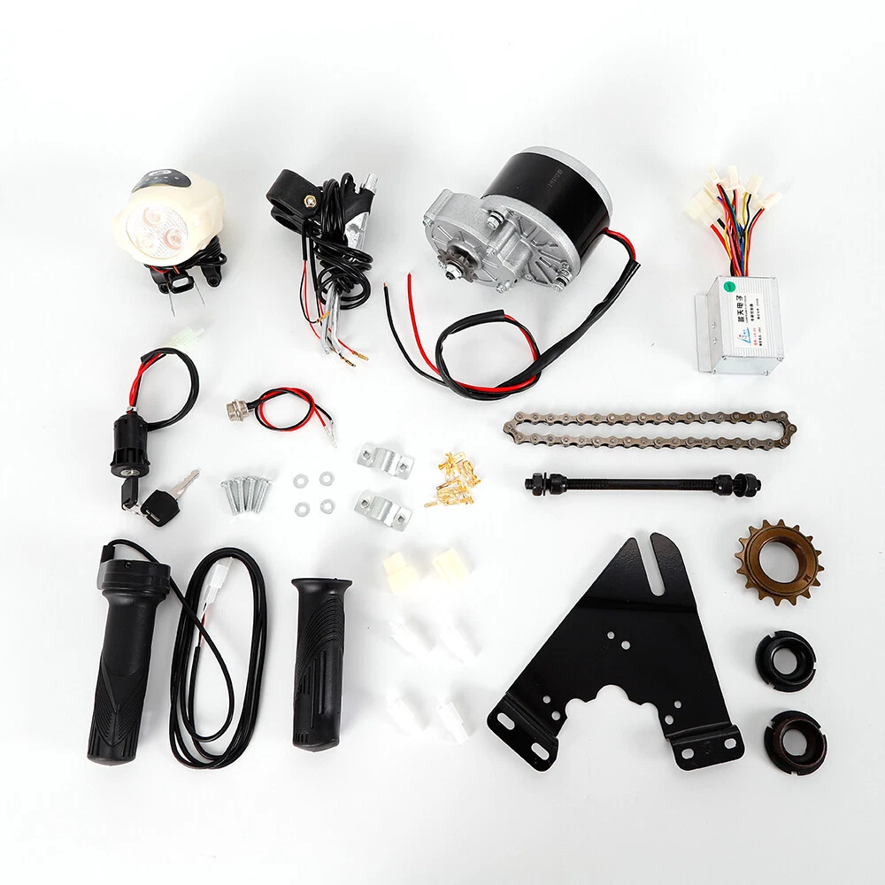 This product can be used to convert bicycles into electric vehicles. Name:Electric Bike Conversion Kit Specifications Fit For:22-29 inch ordinary bicycle Rated Voltage:24V Rated Power:250W Flywheel Teeth:16 Rated Speed:330rpm/min Reduction Ratio:9.78 Features -Environmentally friendly material, durable and easy to operate. -This kit is suitable for installation on regular bicycles of 22-29 inches. -This kit is not suitable for modification in special models and variable speed models. Note -Without battery and charger!!! -Due to the manual measurement,there might be some error. ELECTRIC BICYCLE MOTOR KIT E-BIKE CONVERSION KIT SIMPLE DIY EBIKE 22"-29" SALE!! This product can be used to convert bicycles into electric vehicles. Name:Electric Bike Conversion Kit Specifications Fit For:22-29 inch ordinary bicycle Rated Voltage:24V Rated Power:250W Flywheel Teeth:16 Rated Speed:330rpm/min Reduction Ratio:9.78 Features: -Environmentally friendly material, durable and easy to operate. -This kit is suitable for installation on regular bicycles of 22-29 inches. -This kit is not suitable for modification in special models and variable speed models. Note -Without battery and charger!!! -Due to the manual measurement,there might be some error. Package Included 1 x Motor 1 x Controller 1 x Motor Bracket 1 x Light 1 x Chain 1 x Electric Door Lock 1 x Flywheel 1 x Extended Shaft 2 x Connector 1 x Charging Interface 2 x Speed Control Switch 2 x Handle 5 x Plastic Insert 10 x Copper Plug 2 x Steel Plate 4 x Screws 4 x Ring Payment Delivery details Terms of sales About us Contact us Payment We accept ebay payment 。 Fees such as import duties, taxes are not included in the item price or shipping costs. These charges are the buyer's responsibility. Delivery details Shipping: 2-9 working days to: USA Terms of sales We maintain high standards of excellence and strive for hundred percent customer satisfaction. Feedback is very important to us. We hope that you contact us immediately before you give neutral or negative feedback, so that we can address your concerns. It is impossible to address issues if we do not know about them! About us Your satis faction is our ultimate goal. We work hard to earn your trust and future business. Our certified technicians have tested each item before shipping. The unit comes with 1 year limited warranty on all manufacturing defects. a) If you receive a defective item, you may return it or ask for a discount. Please contact us within 14 days after you receive the package. b) What you returned must be intact and in its original packaging as re? u. Customer is responsible for shipping costs of the returned item. c) We will cover the cost of shipping back t with the shipping rate indicated in the registration page. We will send you a new unit or refund the full payment you paid. Thank you. Contact us Business Hour Business Hour: Monday To Friday: 8:30 AM to 5:00 PM (Beijing China time) Due to time zones, our reply to your questions may not be immediately. But within above working time, we will reply your email within 24 hours. If it's non-workdays, please kindly be patient and wait till Monday. Please contact us with ebay message. Please feel free to contact us if you have any questions. Monday To Friday: 8:30 AM to 5:00 PM (Beijing China time) Due to time zones, our reply to your questions may not be immediately. But within above working time, we will reply your email within 24 hours. If it's non-workdays, please kindly be patient and wait till Monday. Please contact us with ebay message. Please feel free to contact us if you have any questions. On Dec 3, 2024 at 00:25:54 PST, seller added the following information: