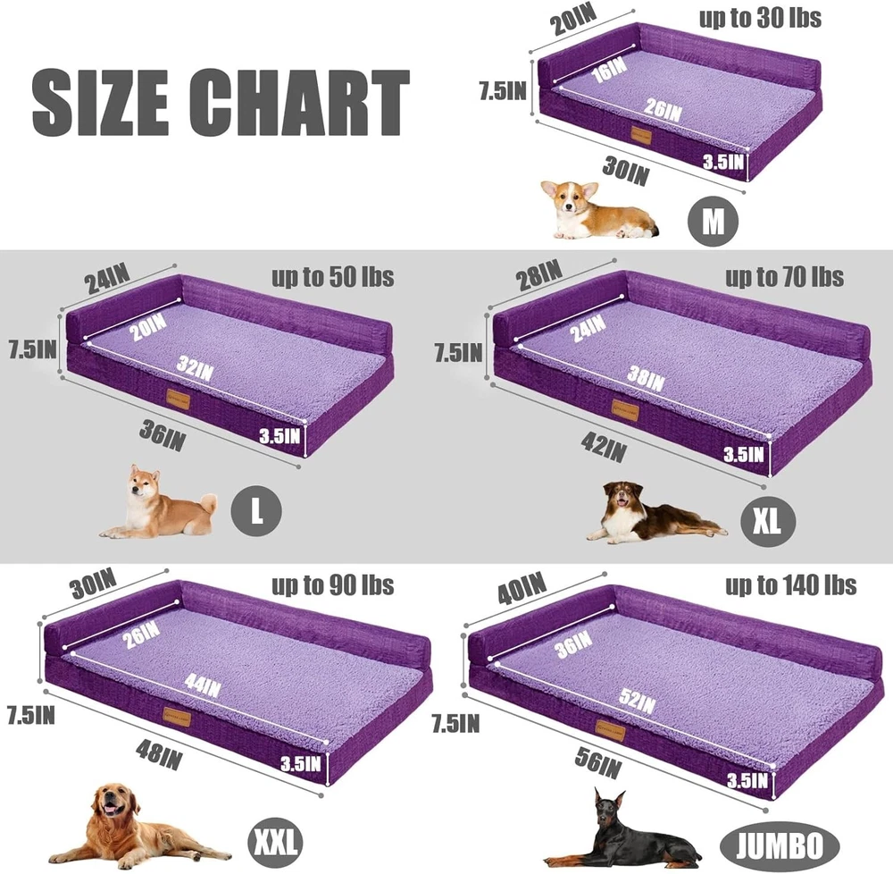 Orthopedic Jumbo Dog Bed 56''X40'' - Waterproof L-Shaped Pet Sofa in Purple ‹ › ‹ › ‹ › ‹ › ‹ › ‹ › ‹ › ‹ › ‹ › Orthopedic Jumbo Dog Bed 56'' X 40'' - Waterproof L-Shaped Pet Sofa in Luxurious Purple Features: Orthopedic Support : Crafted with 3.5 inches high-density egg crate foam, providing optimal support and pressure relief to ease joint pain and arthritis discomfort. L-Shaped Design : The innovative L-shaped design incorporates foam edges that offer additional support for your pet's head and neck, while two flat sides provide ample space for stretching out, enhancing snuggling and burrowing comfort. Cozy Sleep Surface : Made with warm, soft cotton fleece fabric and a waterproof TPU liner that assures a sense of security for your furry friend, allowing them to drift into deep sleep faster. Multiple Options : Choose from six elegant colors with five available sizes: M: 30'' x 20'' up to 30 lbs L: 36'' x 24'' up to 60 lbs XL: 42'' x 28'' up to 80 lbs XXL: 48'' x 30'' up to 100 lbs Jumbo: 56'' x 40'' up to 150 lbs Care Instructions : The removable cover is machine washable for easy cleaning; however, please note that the egg crate foam is not washable. Allow up to 72 hours for the foam to fully expand after compression. Benefits: Reduces joint pain and discomfort, allowing for restorative sleep. Enhanced support for pets who love to snuggle and burrow. Stylish design complements your home decor while keeping your pet cozy. Sound construction ensures durability and long-lasting comfort. Easy maintenance provides convenience for pet owners. Why choose our Orthopedic Jumbo Dog Bed? Your beloved pet deserves the utmost comfort, and our Orthopedic Jumbo Dog Bed is designed to provide just that. With its luxurious L-shaped design, supportive high-density foam, and cozy fabric, this bed offers a sanctuary for rest and relaxation. Additionally, its waterproof surface adds a layer of practicality, ensuring enduring comfort no matter how many times your pet dreams of their next adventure. Give your furry friend the gift of comfort and style. Order the Orthopedic Jumbo Dog Bed today and watch them drift into dreamland in pure bliss! Shipping Free & Fast Shipping - We offer free shipping to most of the USA with a normal delivery time of 3-7 days. However, due to the current situation, additional delivery time (up to 3 weeks) may be required for some items. Alternative Carriers - We may use alternative carriers (e.g. USPS, FedEx, UPS, etc.) to ensure your package arrives safely and on time. Due to the use of multiple carriers, we are unable to provide a tracking number automatically. Handling Time - Orders are processed and shipped within 1-2 business days of receiving cleared payment. Shipping Restrictions - Shipping to Alaska, Hawaii, Puerto Rico, Guam, and other US territories may incur shipping charges or delivery restrictions. Please contact us before ordering, or your order can be refunded/cancelled. State Restrictions - There may be restrictions based on your state of purchase. For example, certain items may not be shipped to California due to state regulations. Contact for Tracking Updates - If you require tracking updates or have any concerns about the delivery of your order, please feel free to contact us, and we will be happy to assist you. Return 30-Day Hassle-Free Returns - We want you to be completely satisfied with your purchase. If you are not, you can return the item within 30 days of receiving it for a full refund or exchange. Easy Return Process - To start a return, simply contact us and we will provide you with a prepaid return shipping label and detailed instructions. Restocking Fee - There are no restocking fees for returns. However, the buyer is responsible for return shipping costs if the return is not due to a seller's error. Refund Processing Time - Refunds will be processed within 5 business days of receiving the returned item in its original condition. Payment We accept all major credit cards, PayPal, and Apple Pay for your convenience. Your payment information is secure and encrypted to ensure a safe and seamless transaction. Please complete your payment within 3 days of purchase to avoid any delays in shipping. Feedback Your feedback is extremely important to us. We strive to provide the best products and customer service possible. If you are satisfied with your purchase, please take a moment to leave us a positive review. If you have any concerns or issues with your order, please contact us before leaving negative feedback. We are committed to resolving any problems and ensuring your satisfaction. Contact Us If you have any questions or concerns, please feel free to reach out to our customer support team. You can contact us through the eBay messaging system. We are available Monday to Friday, 9:00 am to 5:00 pm EST, and we will do our best to respond to your inquiry within 24 hours. Buy it now and enjoy a pleasant shopping experience! UPC: Not Set Model: Not Set MPN: Not Set Unit Quantity: 1 Features: Cooling,Covered,Electric Heating,Foldable,Machine Washable,Orthopedic,Outdoor,Portable,Removable Cover,Scratch-Proof,Self Heating,Tear Resistant,Waterproof,Anti-slip Dog Size: XXL Type: Sofa Dog Breed: Labrador Retriever Brand: Unbranded Material: Egg Crate Foam Country/Region of Manufacture: Not Set Unit Type: Unit Personalize: Not Set