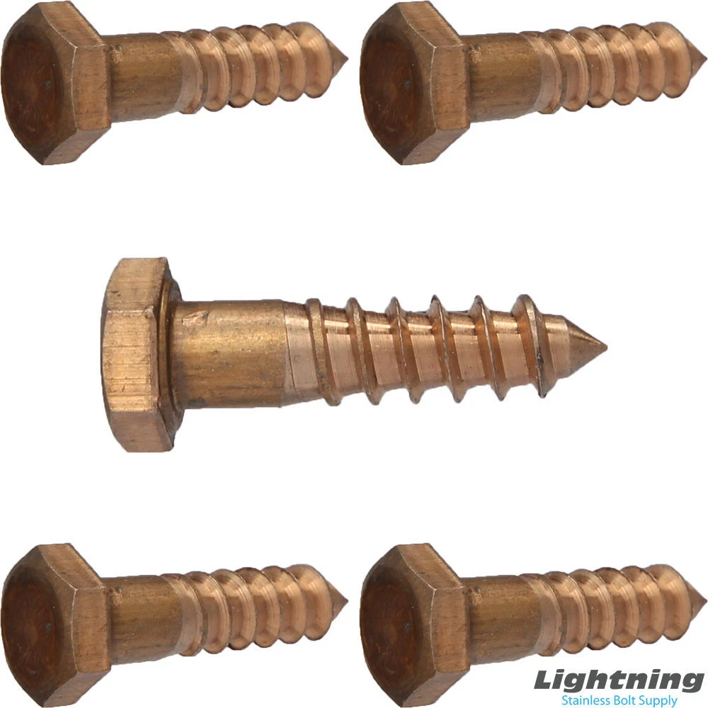 Lag Screw Bolt Hex Head Silicon Bronze Grade 651 5/16" x 2" Qty 15 Lag screws, also commonly reffered to as lag bolts, are heavy duty wood fasteners. Lag screws require a pilot hole pre drilled before installation and to be driven in with a ratchet due to their size. Thread Length The minimum thread length shall be equal to one-half the screw length plus 1/2″ or 6”, whichever is less. Above Mentioned is a General reference, If exact thread length is needed please inquire General Product Information Head Style : Hex Head Hex Head Width Flat to Flat : 1/2" (0.500") Body Diameter : Length Measured Under Head : 2" Quantity of Fasteners In Package15 Material : Silicon Bronze 651 Shipping: All orders placed before 3:30 pm EST Will Ship Same Day Tracking is provided on ALL Orders Priority Mail Shipping service is offered at a discount of only $3.95 UPS Ground UPS Next Day Air is available, Please inquire for pricing Returns : ALL returns are accepted if returned within 60 days. Money Back or exchange guaranteed. NO Restocking Fees. For YOU, we constantly strive to find ways to improve our performance.
