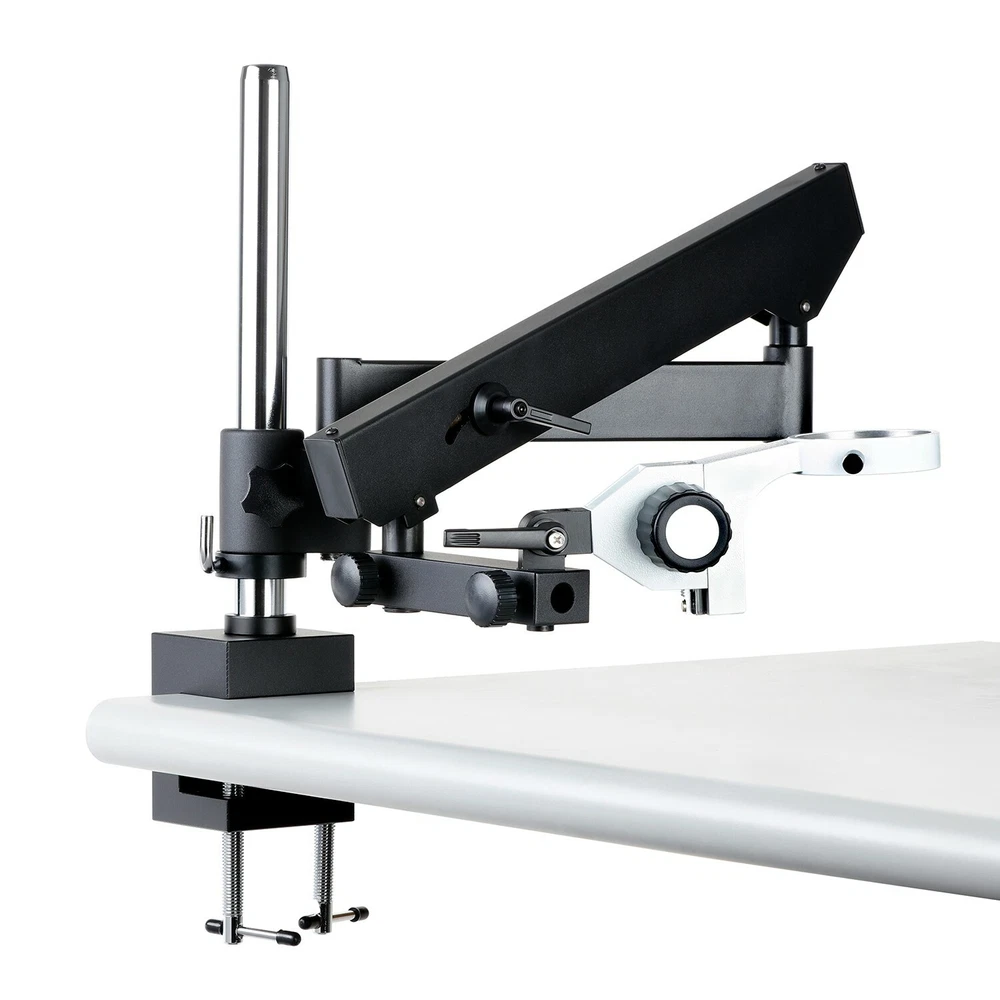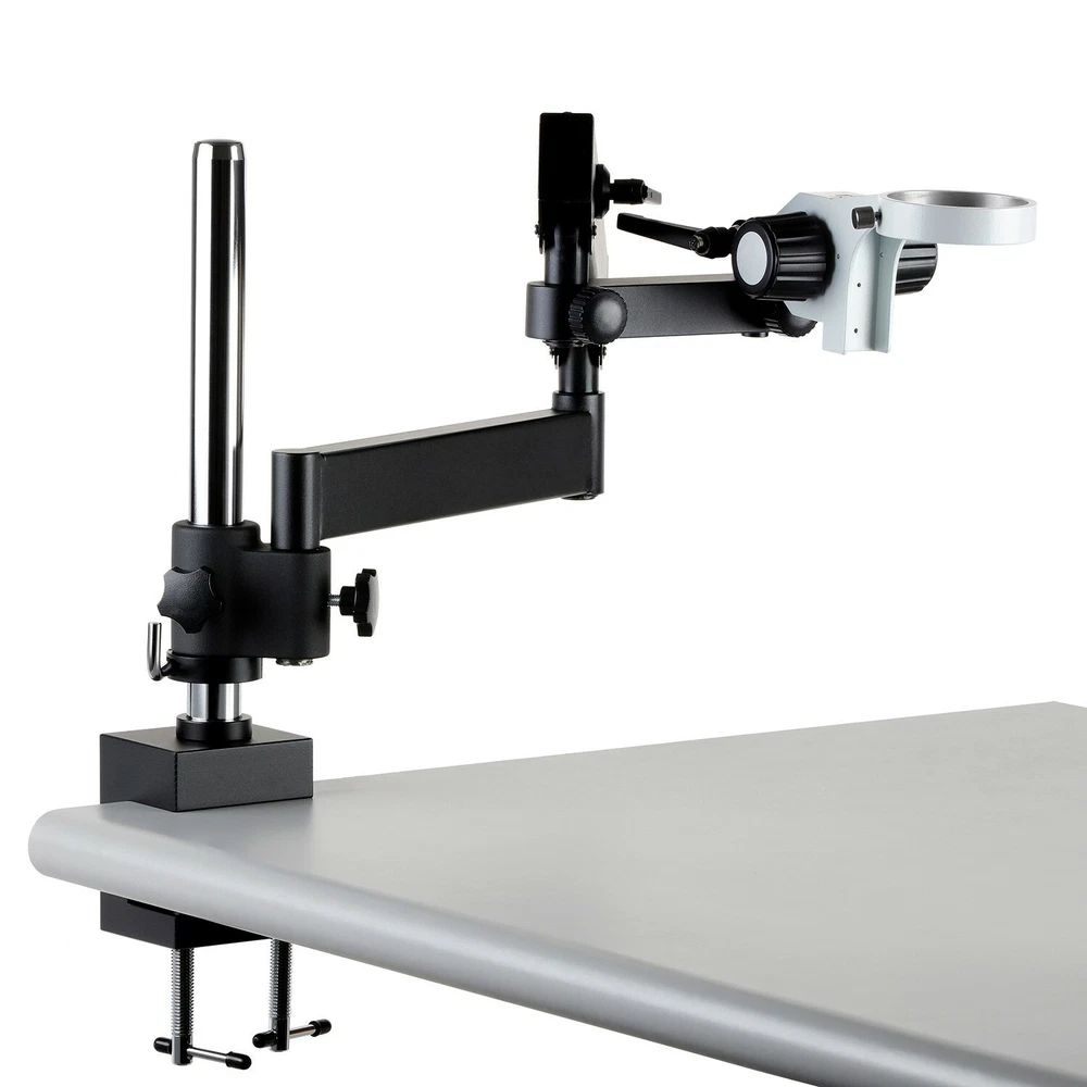 Amscope Articulating Stand w Post Clamp 76mm Focusing Rack for Stereo Microscope Key Features: This is an articulating arm with a 3" (in diameter) O-ring focusing rack, and a post clamp for stereo microscopes. 3" (76mm) O-ring Focusing Rack INCLUDED BY DEFAULT 40" (1020mm) Reaching-out Length 20lbs (9kg) in Weight Brand Name: AmScope Model No: APC This is an articulating arm with O-ring focusing rack with 3" diameter, and post clamp for stereo microscopes. Great for examining parts attached to a larger or awkward shaped item, this articulating arm stand comes with a clamp that can be secured to ledges up to 2 1/8" (53mm) thick. Features & Specifications: 3" (76mm) O-ring Focusing Rack INCLUDED BY DEFAULT 3-1/4"(84mm) O-ring available UPON REQUEST ONLY 40" (1020mm) Reaching-out Length 20lbs (9kg) in Weight A Versatile Articulating Stand with Clamp for Covering Large Working Area Articulating Design for Flexibility Manufactured under ISO 9001 Quality Control Standard Excellent Five (5) Year Factory Warranty Packing List: One Articulating Arm with Post Clamp One Focusing Rack w/3" diameter (unless otherwise requested by buyer) User's Manual Download Shipping & Handling: FREE Shipping to Contiguous USA (the lower 48 States) Return Policy We offer 30 days from the date of receipt (verified by tracking information) to request a return on a unit. To do so, please send us a message through eBay member to member messages, with your reason for return, requesting an RMA number. Note that shipping costs are borne by the customer. Returns requested after 30 days are not valid, and any returns sent without an RMA number will be returned to sender at the sender's expense. Also, please insure all items shipped back, as damage to items by the courier during the return shipment to us are not covered otherwise. Please keep all original packing materials, as they are required for return (or a 10% restocking fee will be charged). Returned items must be in new/usable condition unless defective on arrival to you. Warranty Information We, AmScope, provide all warranty services. Please feel free to contact us whenever you need help by messaging us from the store you purchased the product from. Five Year Warranty for Microscopes - All our microscopes come with a five (5) year factory warranty against manufacturing defects, covering labor and parts. One Year Warranty for Accessories - All our microscope accessories (USB cameras, illuminators, illumination, dust covers, and etc.) come with a one (1) year warranty. Note: Buyers bear the cost of shipping and handling cost round trip for warranty services. Warranty does not cover consumable accessories and parts such as bulbs. Warranty service times vary throughout the year, and are processed in a first come, first serve manner, when parts are available and in stock. Most repairs/replacements are done within 1-2 weeks, however if there is a long line during the busy season, or if your parts need to be ordered from our manufacturer, processing times can be up to 6-8 weeks. We appreciate your patience and understand everyone has a critical need for their unit, and do everything we can to ensure that these requests are handled as quickly as possible. Defective/Missing Items For defective items or any missing items from your order, please contact us right away to let us know of the issue. We allow a 30 day period (from the date of receipt of the item in the mail) to report such issues--any items missing after that time frame will need to be purchased, and any defective items will be treated as warranty issues for repair or replacement only (no returns for refund). For missing items and broken items, we do require a picture of the shipping label on the box, and of the items that arrived with your unit for verification before we can send any missing items or replacements to you. Return Procedure To initiate an RMA, please send us a message through the store you purchased it from. Include your order number, reason for return, and if any pictures are required for your claim, please include them also. From there, we will process within 24-72 hours, and if approved, issue you an RMA number and instructions on where to mail your unit back to. If qualifying for return shipping covered by us (for defective items within 30 days of receipt), your return label may take another 24-48 hours to process and be received in your email inbox. Follow the issued instructions, and once received, we will process the item in, and check to ensure everything is there. We will contact you when the item is ready for return shipping (if a warranty request), or simply issue your refund with the appropriate deductions (if any) once processed. Processing is done first come, first serve, and can take between 1-4 weeks to process (depending on how many requests we currently have in queue). We thank you for your patience while we work on your request.