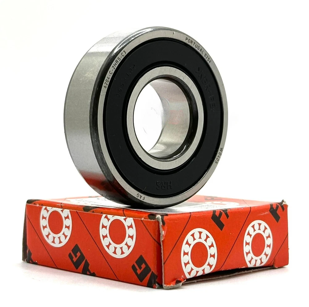 Description: Product characteristics Category:Deep groove ball bearings Ball rows:Single row bearing Material:Standard bearing steel Outer ring:Without flange/groove Seal:Contact seals on both sides Clearance:Normal radial clearance Cage:Sheet steel cage Temperature range:-20 to +120 °C Tolerance class:Tolerance class P6 / ABEC 3 Current insulation:No current insulation Bore:Cylindrical bore Material of rolling elements:Standard bearing steel Weight:0,105 kg ProductID:10104684 Customs tariff number:8482 1090 EAN:4064327040411 Manufacturer part number:094983410-0000 Dimensions Inner dimension: 20,000 mm Outer dimension: 47,000 mm Width: 14,000 mm Package Includes : ONE BEARING 6204 2RS FAG