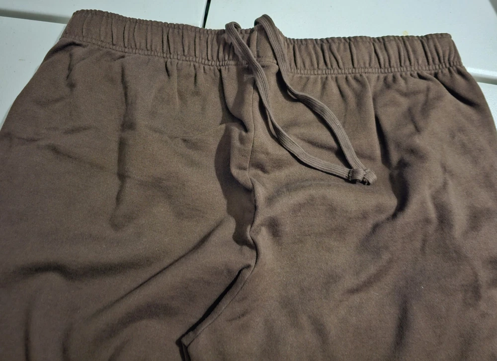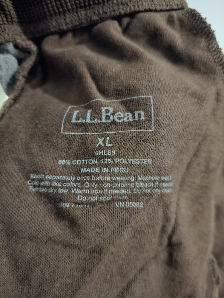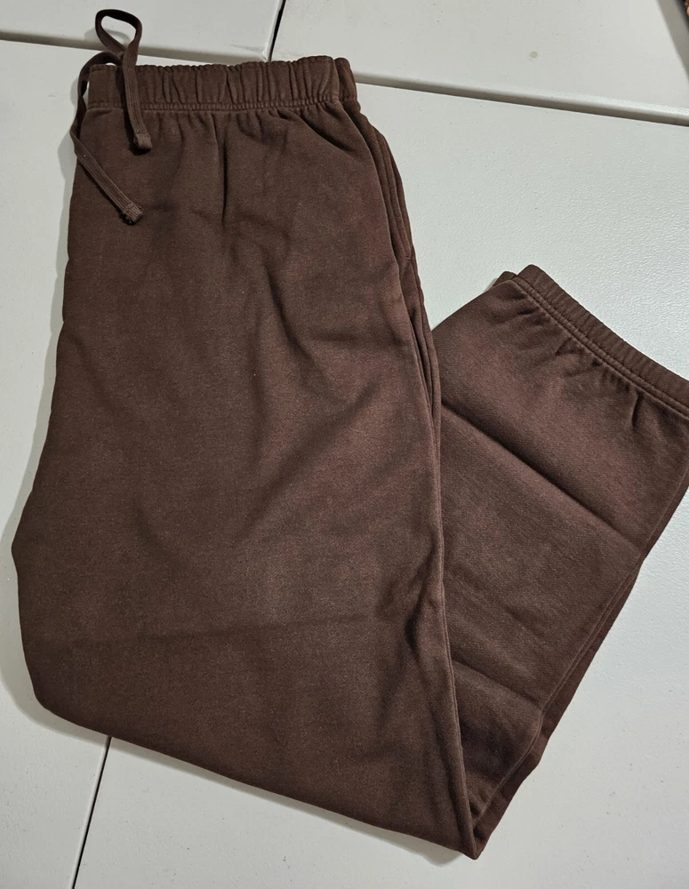 Men's LL Bean XL Deep Brown (The brown is darker in person than my photo shows) sweatpants with side pockets and elastic with drawstring waist. The legs have elastic at the ankles. 88% Cotton 12% polyester New in package. I removed it from the package to measure and take pictures. Measurements: Waist : 36" Inseam: 32" Measured lying flat. Waist is elastic with drawstring, so it can accommodate a little range in sizing. Returns accepted within 30 days in same condition as purchased. Buyer pays return shipping. Shipping: I'm packing this tightly in a Priority Mail to save on shipping