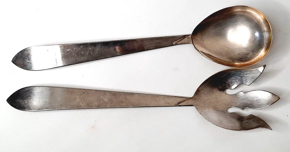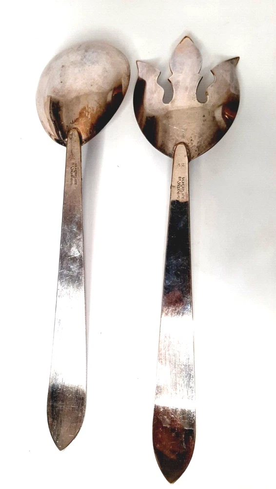Pair of Silverplate By Laben Serving Utensils Salad Fork & Serving Spoon Good condition with some tarnish and finish wear