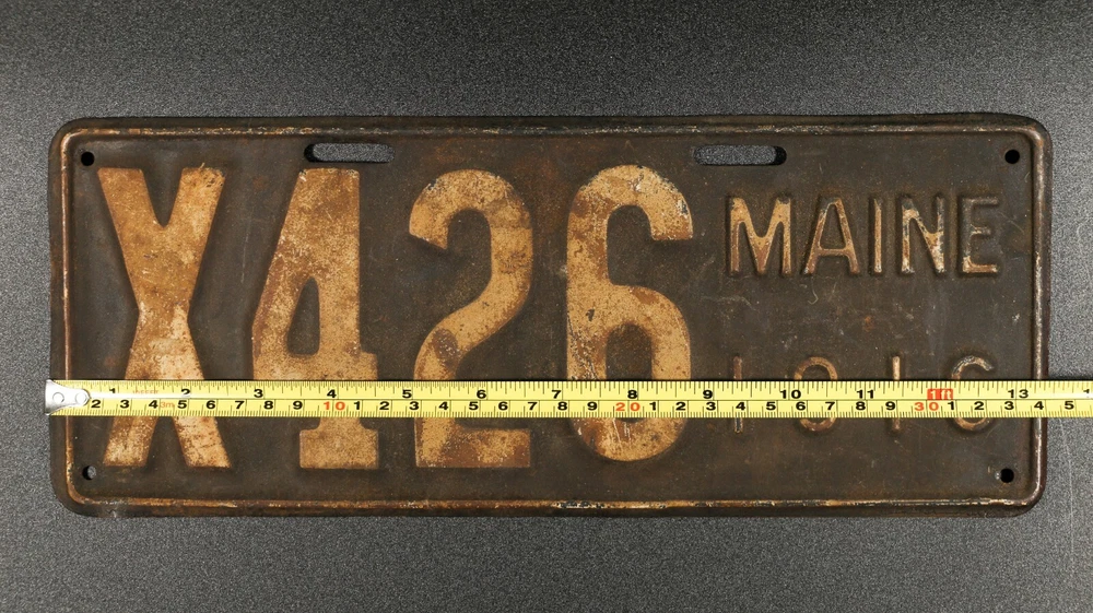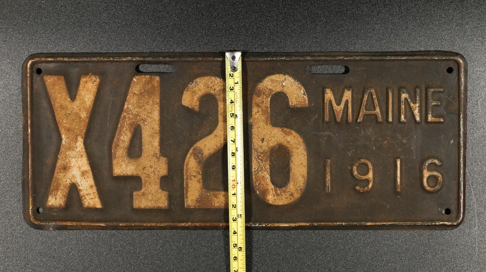 MAINE 1916 Pressed/Stamped Steel License Plate • Number X426 • Rare License Plate 1916 antique stamped steel Maine license plate. Original p late design is embossed white serial on dark blue with embossed white border; "MAINE 1916" on right side. This was the first year after porcelain plates had been the standard. Serial number X426, “X” designating it as being a truck plate. Good survivor with natural age patina. As received condition. Don't miss the chance to get this antique automobilia collectible for your own or as a unique gift for someone special. * This license plate complies with eBay policy for selling license plates. ⭐ CONDITION: Good+, visible age wear patina, surface oxidation, no abnormal wear, dents, bends or damage. Review images for condition accuracy and verification, they are of the actual represented license plate, ask questions before purchasing. ⭐ DIMENSIONS: 13.5 inches by 5.25 inches. ⭐ WHERE I GOT IT: Liquidating a family member’s collection, purchased from a Maine auction house, it has not changed owners in 20 to 40 years or more. ★ Everything sold as-is, pre-owned authentic vintage/antique. Pictures are of the actual represented item, ask questions before purchasing. Polite, helpful information and input is encouraged. 🚚 Shipping Info 📦 Purchases are meticulously packed and shipped without delay. Shipping is through USPS and sometimes FedEx or UPS. Requests for specific carriers or shipping upgrades provided at cost. The USPS has become unreliable with an increased amount of unexplained delays, damages and losses. I always pack and ship same or next postal day. Contact me for questions or help. ★ INTERNATIONAL SHIPPING fees and services processed exclusively by eBay. 🌟 Customer Service & Support 🌟 Your satisfaction is guaranteed. Issues are prioritized for fast resolution. I strive to meet or exceed customer expectations. If you experience less, please let me know how I can do better; nothing is too small. My response always friendly with genuine concern to answer questions accurately and resolve issues quickly. Contact me for anything. Leaving 5-star positive feedback is the best way to show me your appreciation.