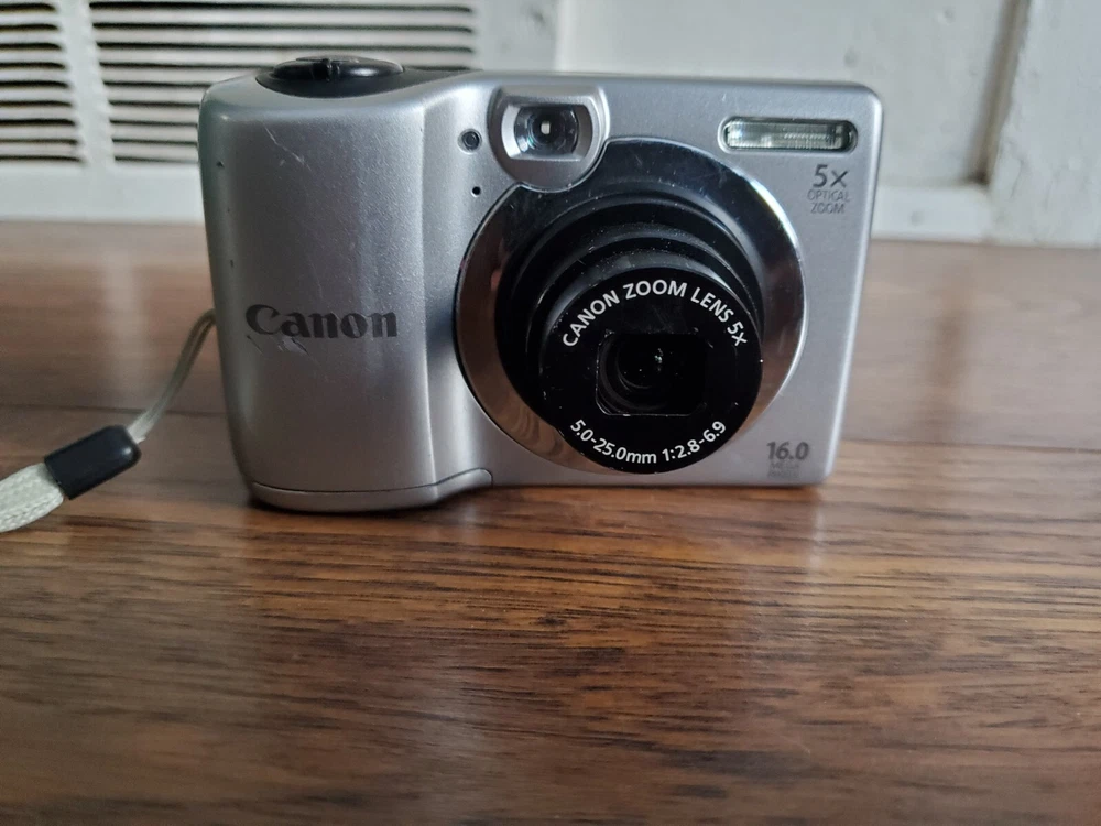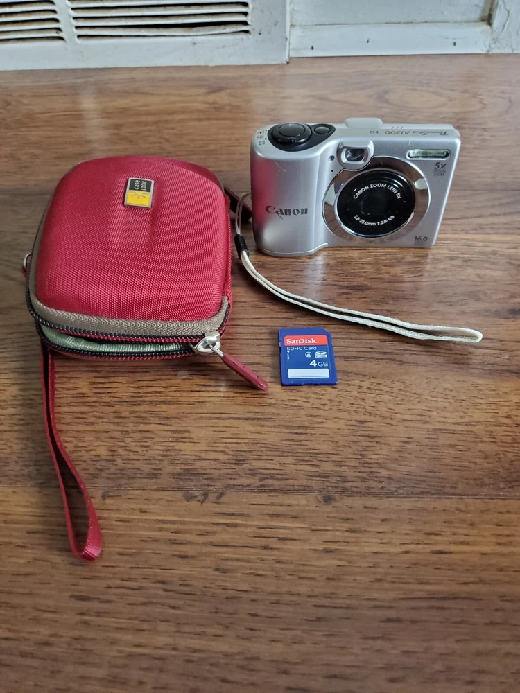 Silver Canon Powershot A1300 Digital Camera 16.0 mp, has a couple scratches on the front (see pics), includes SD Card & Case, requires 2 AA lithium batteries not included, as pictured, no returns. Shipped USPS