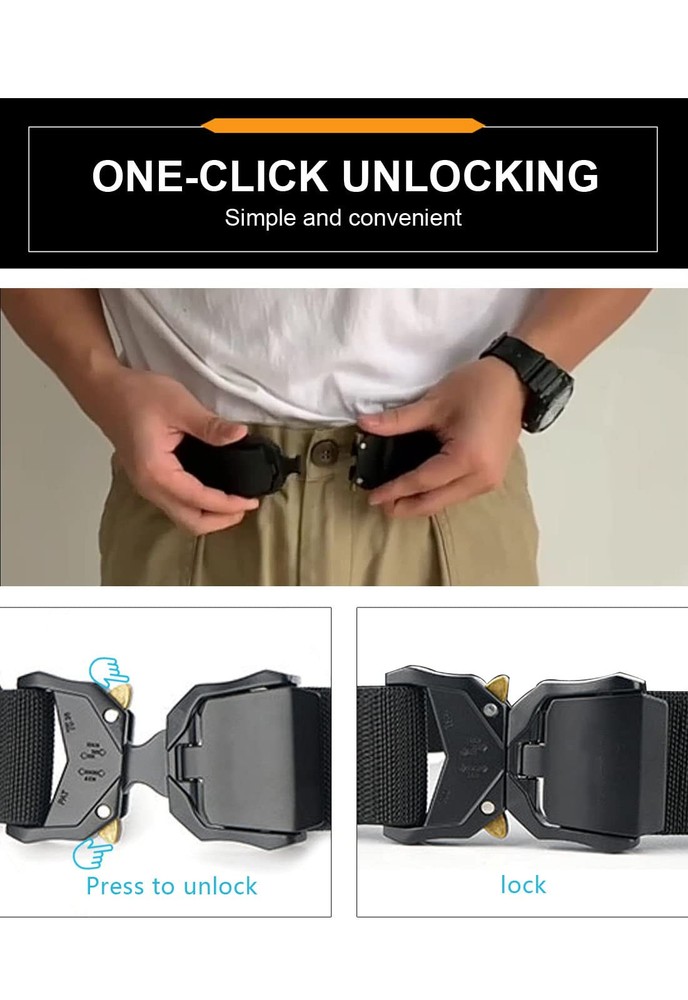 DURABLE COMBAT-READY CONSTRUCTION-Made With Heavy Duty IndustrialNylonMore than that, it is very sturdy, which make your waist be more comfortable as well as stay tight, when you take large range of activities. UNIQUE DESIGN-If you are looking for a belt that reflects your outstanding personality,This belt touts the high-quality metal quick release belt,The crafted heavy-duty buckle, made of zinc alloy, has very strong load-bearing capacity, which can meet your different wearing requirements. FIT EVERYWHERE-It is widely used for outdoor activities, such as camping, hiking, cycling, fishing, mountain climbing, travel, field training, etc. The automatic belt design is elegant, suitable for jeans, casual pants, suit pants,Perfect mens casual belt that will soon become your favorite go to everyday leather belt. EASY TO USE-Slide the belt into the sliding, pull the leather belt through, then click-itsimply automatically locks. To release the casual belt, gently push the lever on the side of the automatic buckle, then the lock snaps shut. Simple! RISK FREE ORDERS-We are committed to making our customers satisfied. If there is any problem with the product, contact us without hesitation.