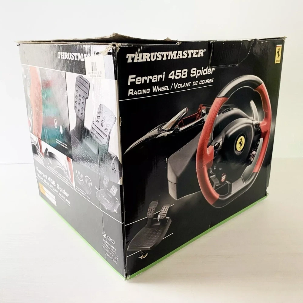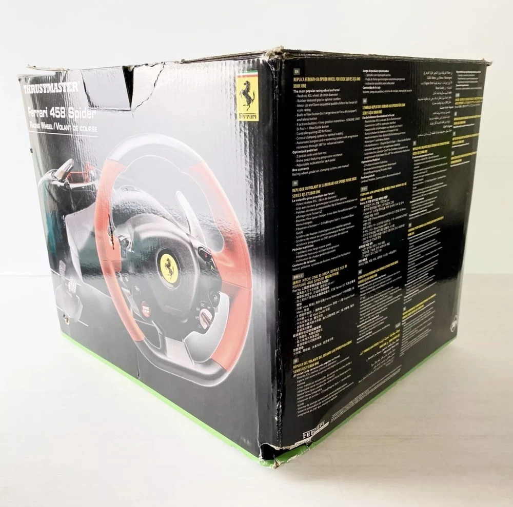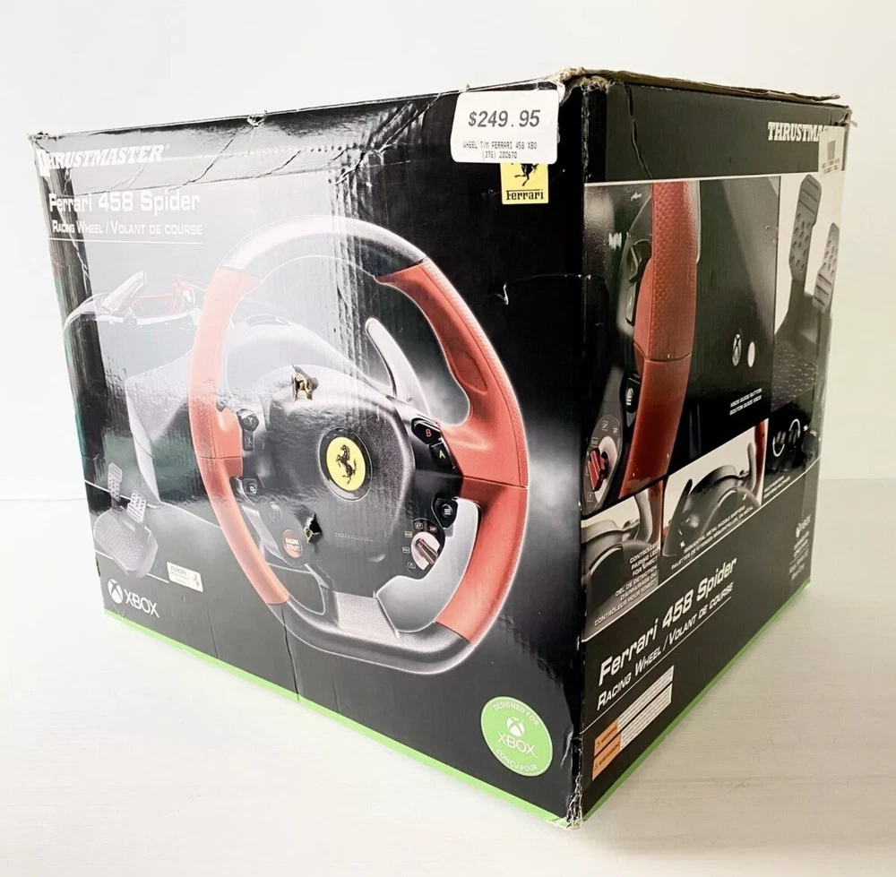 Hello and thank you for inquiring of our listing! We have an open box, unused Ferrari 458 Spider racing wheel in amazing condition! Will be packed safely and insured!