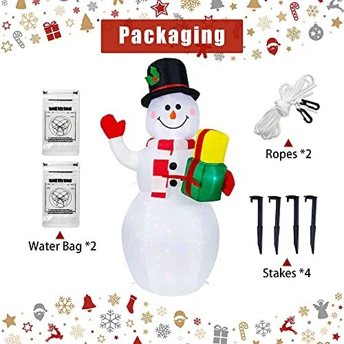 30 Days Return Policy Fast Delivery Trusted seller Christmas Decorations Outdoor Inflatables Snowman, Christmas Blow Up Yard Decorations Clearance with Built-in Colorful Rotating LED Lights for Indoor Yard Garden Decorations Product Description CHRISTMAS INFLATABLE DECORATIONS: The Christmas is coming soon, a 5 ft cute inflatable snowman hold a gift and say hello when your kids or your guests come at the door or garden. Create a perfect decor for your Christmas COLORFUL LED ROTATING LIGHTS: The inflatable snowman come with 3 super bright colorful led lights built inside the Blow Up Yard Decorations. Will surely lit up your lawn or garden and transforms your home into a winter wonderland.Suitable for your Christmas . Ideal for outdoor, home, party, yard, garden, lawn, patio, porch decoration and more PACKAGE INCKUDE: inflatable snowman includes a 5 FT Inflatable snowman with 2 fixed plastic Bag, 2 Fasten Ropes, 4 hard plastic stakes, and a Plug. The fasten ropes and ground stakes make it unable to fly away with the wind. you can put it anyw you want EASY SET UP & STORAGE: The inflatable snowman come with a powerful waterproof built-in fan and a plug with UL certification. Just a few seconds you can see the full inflatable snowman after you plug in power supply. After use, you can put it in a small box, The inflatable snowman is made of material, You can use it for many years WARRANTY AND SERVICE: We are focus on provide the great after-sale service for many years, If you have any problem with our Christmas inflatable snowman, Please feel free to contact us through messenger. We will be responds you in time Shipping Returns Payment Shipping Shipping is FREE to all addresses other than APO/PO boxes in the lower 48 states. All our stock ships from US-based warehouses. Shipped via USPS or UPS (depending on location and package weight) Unless stated otherwise, all orders will ship within 24-72 hours of your payment being processed. Check our feedback to see the great reviews of FAST shipping we offer. Returns As our valued customer, we will do our best to make sure the product you receive arrives to you on time and as expected. If you are not satisfied with your purchase, please contact us within 30 days of receiving your order to process a return. Payment We currently accept payment via eBay managed payments only. Once payment is cleared, we will dispatch your shipment within 1-3 business days. Please refer to the "Shipping" tab for more information regarding shipping speed to your destination.