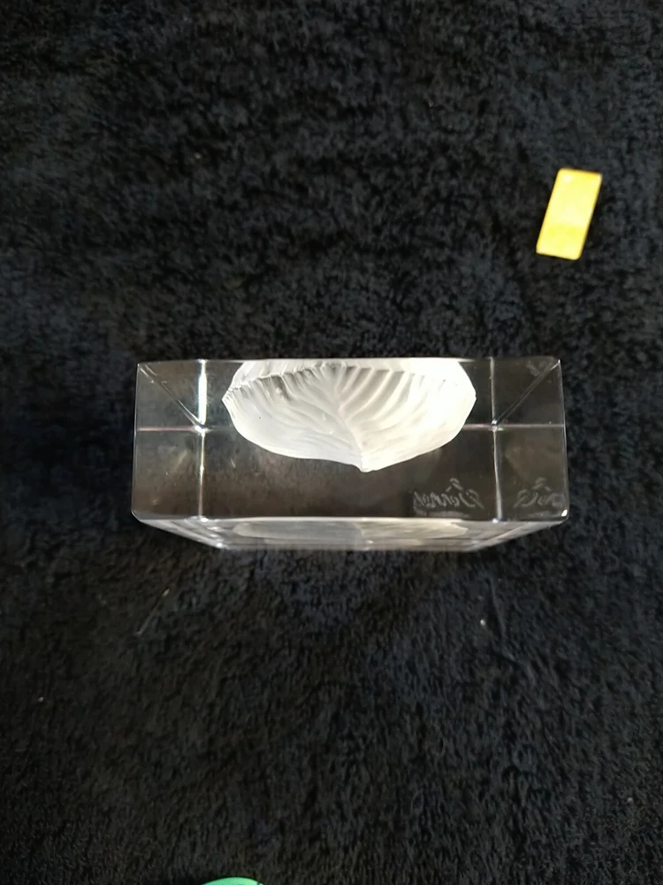 French Sevres Crystal Etched Frosted Leaf Paperweight . Vintage. Made In France. 3.25 inches tall, 2.75 inches wide and 1 inch deep. No chips or cracks that I can see. Unfortunately, the little Cristal Sevres label fell off while I was wiping it down.