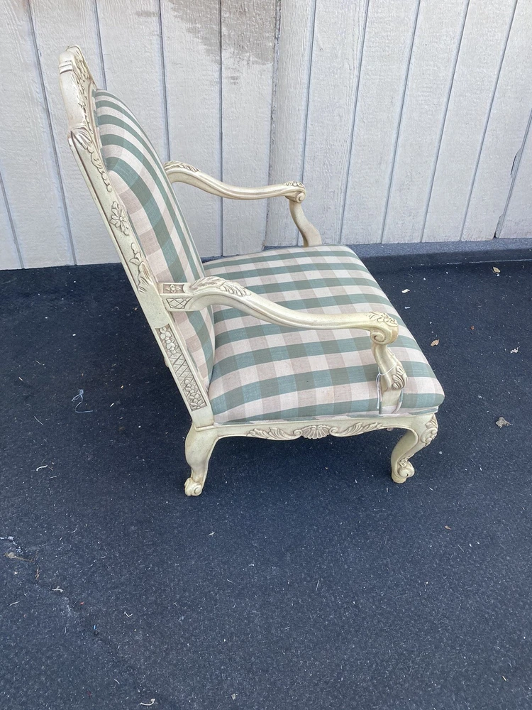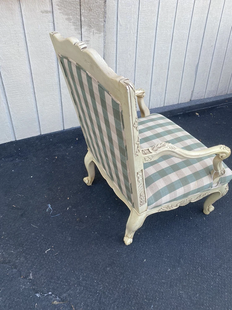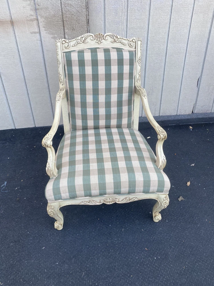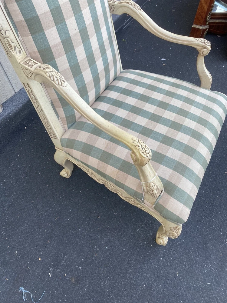 Item Description- Decorator throne chair in very good condition. It is very comfortable. It has the original factory finish. Age- circa 1990 Size- This item can be packaged, insured and shipped via freight directly to your home. SHIPPING: Center Stage does our own deliveries to New York, Pennsylvania and New Jersey including the New York city and Philadelphia area every 2-4 weeks at very reasonable rates. For a delivery quote please email us with a city and zip code. WE SHIP ANYWHERE IN THE USA. IF YOU NEED A HOME DELIVERY QUOTE EMAIL US YOUR ZIP CODE. THE EBAY SITE IS SOMETIMES BROKEN AND WILL NOT LET YOU PURCHASE AN ITEM SAYING WE DO NOT SHIP TO YOUR LOCATION. THE WORK AROUND IS TO MAKE AN OFFER FOR THE AMOUNT STATED ON THE LISTING THEN WAIT FOR ME TO INVOICE YOU BEFORE TRYING TO PAY. SHOWROOM NUMBER 609 261 0602. BUYER IS RESPONSIBLE TO PAY SHIPPING COSTS ON ALL ITEMS! If you need home delivery email us with your zip code for a quote. Large items or those over 100 lbs. will need freight shipping and we are happy to provide a free quote but you will pay the shipper directly. Expect delivery times on these items to be approx. 2-6 weeks depending on your location. All local deliveries within 50 miles and to NYC are done by Center Stage Antiques. If you are picking up from our store you will need to contact us with a pick up time. NJ residents and buyers picking up are subject to NJ sales tax. Center Stage Antiques has been at its current location for 30 years, selling high quality used estate furnishings at a fraction of the cost. All items are sold in their original condition and ready to place in your home. If you have any specific questions regarding the condition of an item please email us before bidding. We are a small family business who do everything ourselves including packaging and local deliveries.