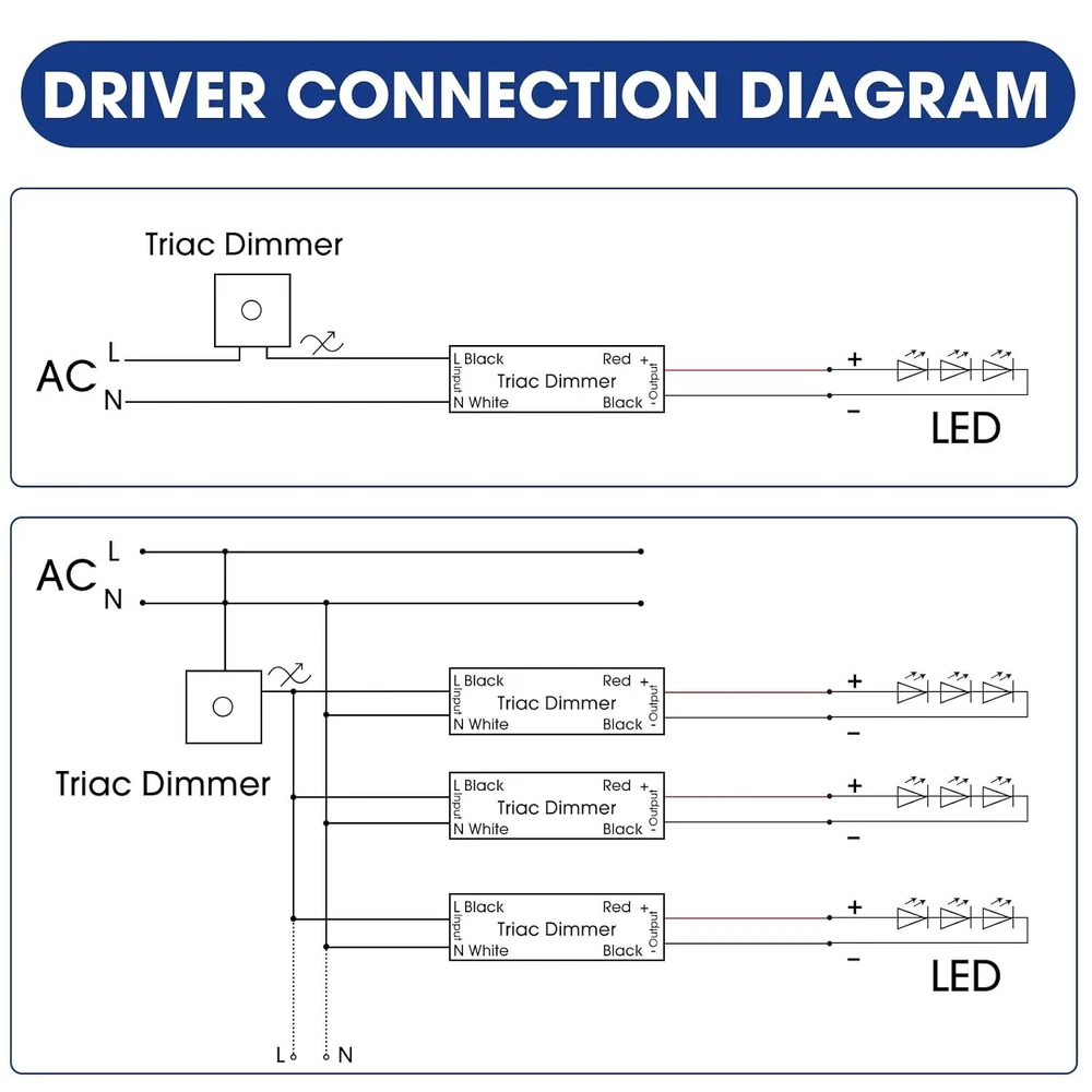 Product Description 60W Traic Dimmable LED Driver,Power Supply 100-277V AC to 12V DC, 0-100% Dimming Transformer,Compatible with Lutron and Leviton Dimmers,for LED Lights,Class 2,UL Listed Triac Dimmable: Compatible with Forward phase, Reverse phase, Triac, MLV, ELV Dimmers.For Iutron, Ieviton, Iegrand, Cooper AH and most Triac dimmer Stable Output: PWM output, does not change the color index.0-100% smooth and full range flicker-free dimming.Newly upgraded exterior design better for DC 12V LED Lighting such as LED strips, modules, light bars, puck, under cabinet and other LED accent lights Easy to Install: The red and black wires are correctly connected to the LED device, refer to the specific connection method in the image Premium Construction: Built-in protection includes short circuit,over loading,over temperature(100℃±10℃ shut down o/p voltage, automatically recover after cooling.).Power factor up to 0.99,more efficient dimmable driver runtime system,high efficiency up to 86%,lower cost of use Specifications: cUL us listed, Class 2, Class P, Type HL, FCC compliant.Full protection plastic case,for dry and damp locations.IP30 About Us We are a reputable seller with many years of experience selling on eBay. Our goal is to provide high-quality products and excellent customer service. Shipping Items will be shipped within 1-3 business days when we received payment. (Orders are not processed on weekends & holidays) Tracking information will be sent once item is shipped. Delivery time depends on destination and other factors Item is shipped to ebay address. Leaving correct address can minimize delay. For international shipping and shipping to Guam, Hawaii and Alaska, Please contact us before placing the order. International buyers please note: Import duties, taxes and charges are not included in the item price or shipping charges. These charges are buyer’s responsibility. We will try our best to reduce the risk of the custom duties. Local pick-up is unavailable at the moment. Contact Us We reply any email messages within 1 business / working days(off-duty at weekend). If you do not get a response from us, then please check your junk or spam mailbox. Our Business hours: Mon-Fri 9:00-18:00, UTC/GMT +8 hours. Please contact us either by clicking "contact seller" in the "purchase history" section or simply click "ask a question" at the bottom of this page. If you are unsatisfied with our item or service, please contact us before leaving any feedback. We are committed to resolve all issues in a friendly and satisfactory manner.