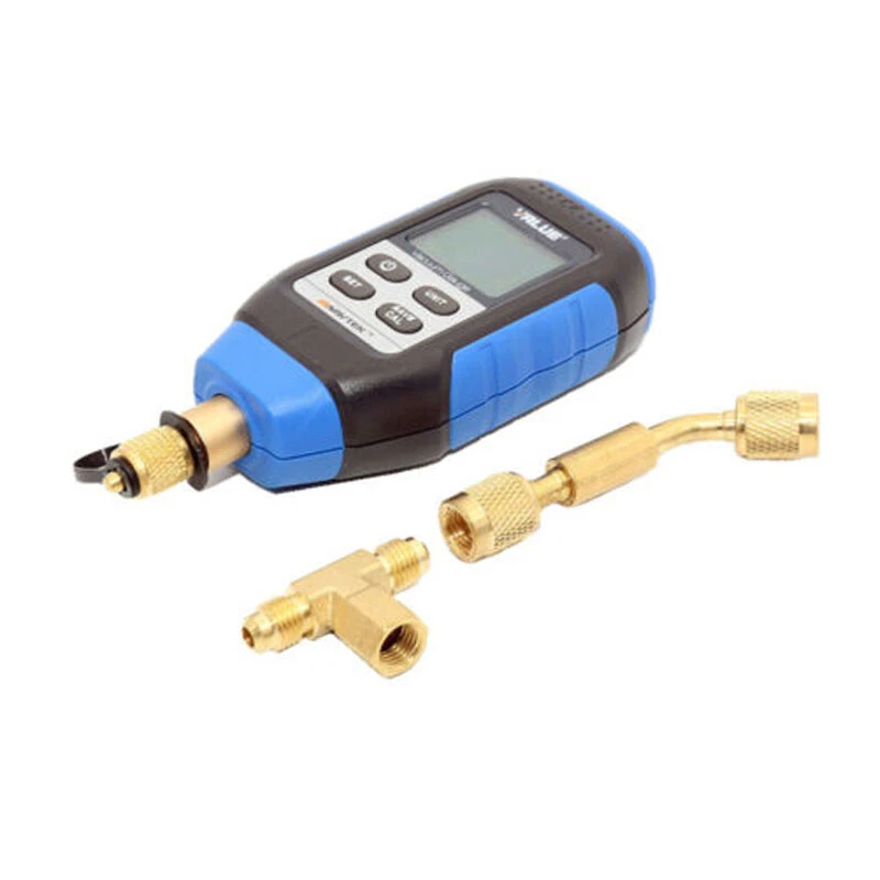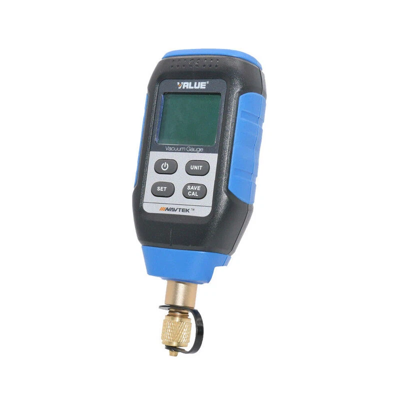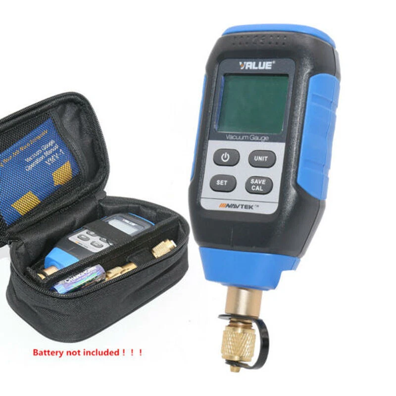 Product Description Features: The VMV-1 uses Pirani's professional vacuum sensors to accurately measure vacuum Can obtain the best information on dehumidification and foreign matter removal in the vacuum system Can obtain the state of the best refueling refrigerant Can monitor the vacuum system in real time Can identify the use of vacuum pumps Specifications: Max overload pressure: 72PSI/0.5Mpa Range: 0-10000Pa, 0-100.00mBar, 0-75.000mmHg, 0-75000Microns Resolution: 0.01(<10pa), 0.0001(<10mBar), 0.0001(<10mmHg), 1(<30000 Micron) Measurement accuracy: 2-100Pa (degree ±5%) Operating temperature: 0-50°C Battery life: 45 hours (3pcs AA battery) (not included) Units: Pa, mBar, mmHg, Microns Refresh rate: 0.5 seconds Interface: 1 7/16-20UNF Sensor: Pirani sensor Automatic shutdown: 10 minutes Backlight: 20 seconds Beep Horn: 90 dB, closes after 10 seconds Weight: 125g Application: Atmospheric environment Includes: 1 x Pressure Vacuum Gauge