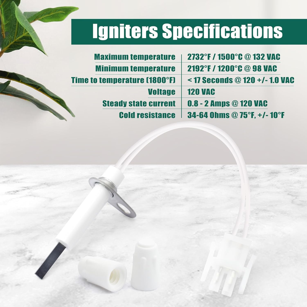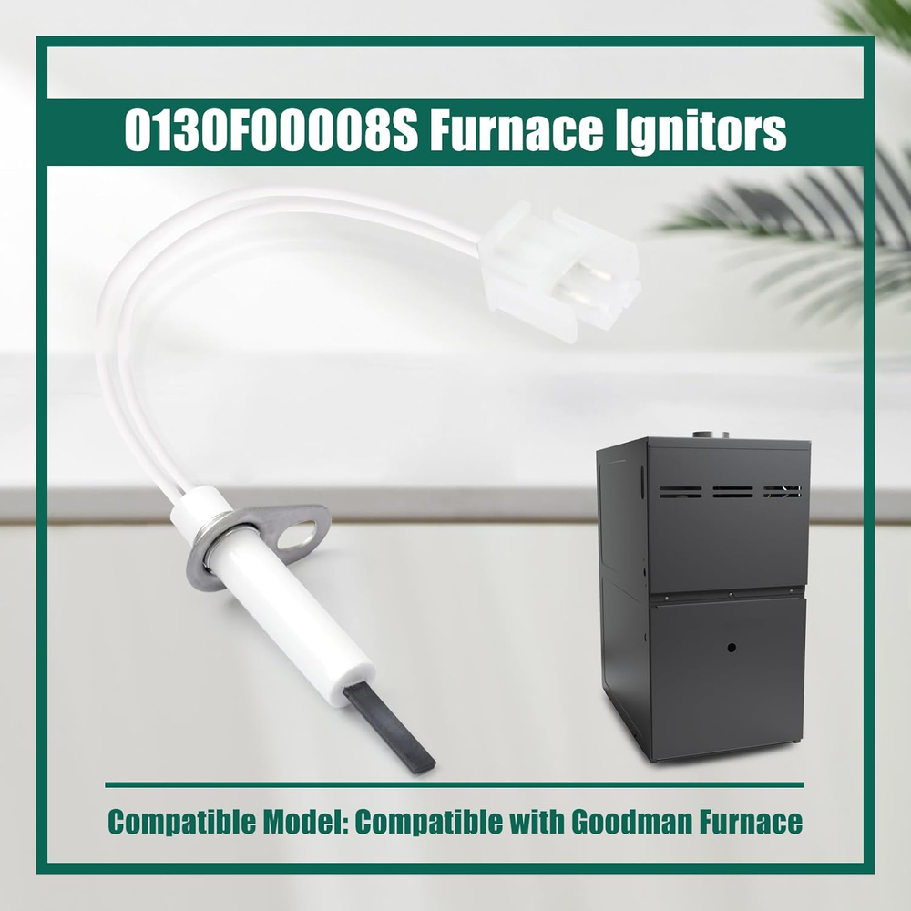 Store New Arrivals Add to Favorite View Feedback Contact 0130F00008S Furnace Ignitors Replacement for Goodman Furnace Hot Surface Ignitors Replace 0130F00008 0130F00008S1 789-707A1 SSN084KS Upgraded Heater Igniters Description Item model number 0130F00008S Part Number 0130F00008S Batteries Required? No Color 0130F00008S Furnace Hot Surface Ignitors Product Dimensions 4.13 x 2.94 x 0.78 inches Warranty Description 1 year manufacturer Item Weight 1.65 ounces Included Components 0130F00008S Furnace Ignitors Compatibility: Ignitors is compatible with Goodman. Applications include furnaces, boilers, water heaters, unit heaters, and pool heaters and others. Provide precise matching and superior function Replace Part Number: Replace 0130F00008S, 0130f00008, 0130f00008s1, 789-707A1, SSN084KS. Please check according to our pictures and information to match your model Upgraded Design: Adopting silicon nitride material and upgraded heating technology, the ignition is faster and more stable, effectively shortening the heating time, ensuring that your furnace starts up quickly and stays running in cold weather Specifications: Maximum temperature: 2732°F / 1500°C @ 132 VAC, Minimum temperature: 2192°F / 1200°C @ 98 VAC, Time to temperature (1800°F): < 17 Seconds @ 120 +/- 1.0 VAC, Voltage: 120 VAC, Steady state current: 0.8 - 2 Amps @ 120 VAC, Cold resistance: 34-64 Ohms @ 75°F, +/- 10°F Safe and Easy Installation: Easy installation process, equipped with 2 wiring nuts to ensure a secure electrical connection and avoid potential safety hazards. Plug-and-play, easy to replace, reducing maintenance costs Product description 0130F00008S Furnace Hot Surface Ignitors Package Details: 1x Furnace Ignitors 2 x Wiring Nuts Product Specifications: Maximum temperature: 2732°F / 1500°C @ 132 VAC Minimum temperature: 2192°F / 1200°C @ 98 VAC Time to temperature (1800°F): <17 Seconds @ 120 +/- 1.0 VAC Voltage: 120 VAC Steady state current: 0.8 - 2 Amps @ 120 VAC Cold resistance: 34-64 Ohms @ 75°F, +/- 10°F Replace Part Number: 0130F00008S 0130f00008 0130f00008s1 789-707A1 SSN084KS Compatible Models: Compatible with Goodman. Applications include furnaces, boilers, water heaters, unit heaters, and pool heaters and others. ABOUT US We offer the best prices around on high quality products. Our E-store includes media such as books, movies, music and games while offering electronics, toys, sporting apparel, clothing, tools, general home, garden items and more. SHIPPING We are always working hard to ensure your package arrives as soon as possible. Please understand that some factors like weather, high postal traffic, and the performance of shipping companies are outside of our control. We offer free shipping to the lower 48 states and ship within 2 business days of payment, usually sooner. We do not accept P.O. Boxes. Please provide a physical address. For shipping outside of the continental USA, we only use eBay's Global Shipping Program.The item is shipped to KY and then sent to the rest of the world. International customers are responsible for all duties and taxes. Continue to check out in order to calculate costs for shipping the item to your country. Messages regarding eBay's Global Shipping Program MUST be directed at eBay EXCLUSIVELY. RETURNS We offer a 30-Day Return Policy on items which you are not completely satisfied with. You have the option for a full-refund or an exchange of the item. No returns are available on items shipped outside of the USA. PAYMENT We accept PayPal. CONTACT US This page content is yet to come Please ad us to your favorite seller and visit again later Thank You CUSTOMER SATISFACTION We try our very best to make sure every customer is completely satisfied. If there's a problem, message us! We're happy to help. WE ACCEPT Copyright © 2021 AutoDS. | All Rights Reserved