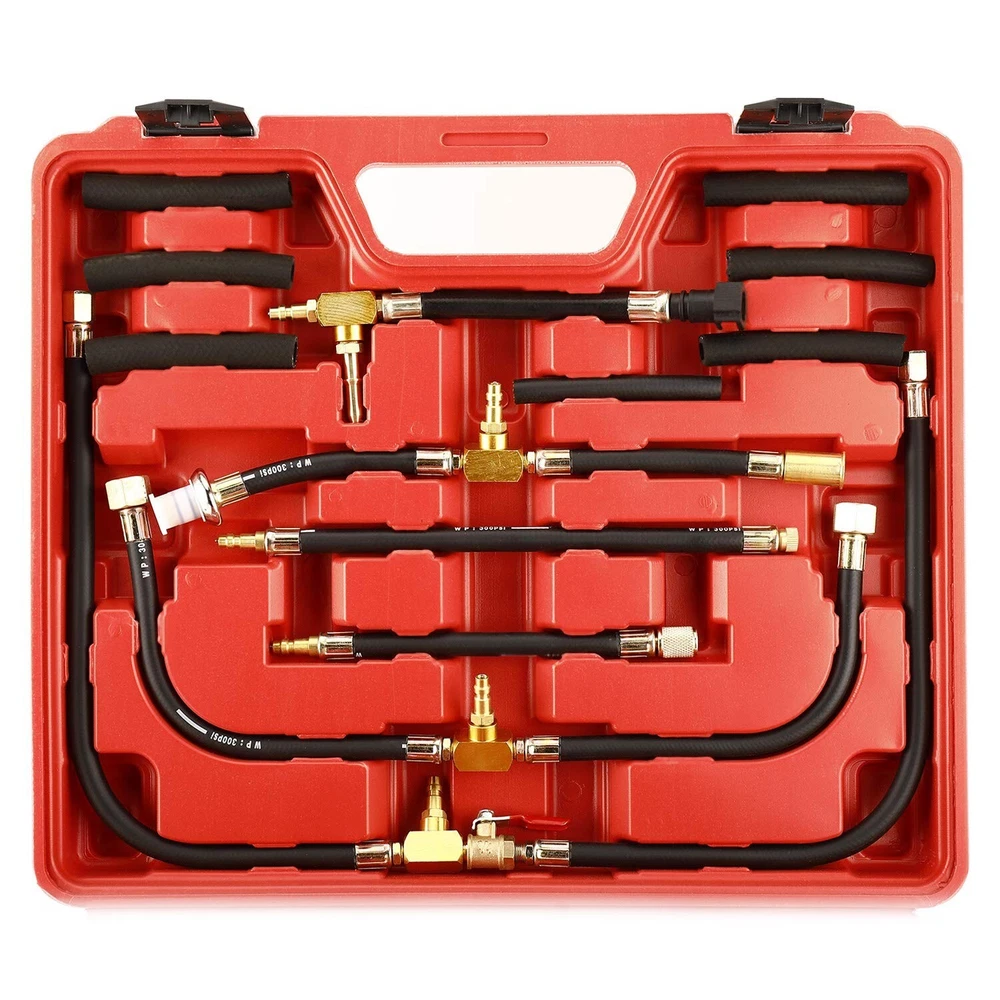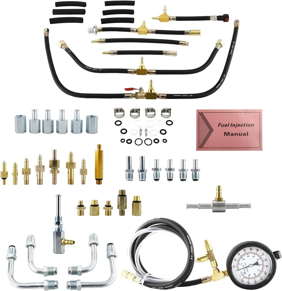 Features: A comprehensive kit of hoses, adaptors, and fittings for testing the pressure on modern petrol fuel injection systems. Designed with a relief valve and 6 feet of tubing to relieve the pressure and fuel safely It also allows checking for sufficient fuel flow The whole kit is packed in a molded case making it easy to store and organize the equipment Packaged includes: Bent tubing, straight tubing Cut hoses, connecting hose with assembly Pressure gauge with relief valve and tubing assembly Quick coupler plugs, Manifold with quick coupler plug Hose clamp, adapters, inverted flare nuts Hose barbs, O-rings Banjo bolts, washers Carrying case, manual Compatibility: This set is compatible with fuel injected automobiles ( Fit for Acura, Fit for Alfa Romeo, Fit for AMC, Fit for Audi, Fit for BMW, Fit for Chrysler, Fit for Daihatsu, Fit for Eagle, Fit for Fiat, Fit for Ford, Fit for Geo, Fit for GM, Fit for Honda, Fit for Hyundai, Fit for Isuzu, Fit for Jaguar, Fit for Jeep, Fit for Mazda, Fit for Mercedes-Benz, Fit for Mitsubishi; Fit for Nissan/Datsun, Fit for Peugeot, Fit for Porsche, Fit for Renault, Fit for Saab, Fit for Sterling, Fit for Subaru, Fit for Suzuki, Fit for Toyota, Fit for Triumph, Fit for Volkswagen, Fit for Volvo ) NB: DO not fit diesel or direct-injection engines which is beyond the rated pressure of the kit. 3.5" Gauge Reading scale: 0-140 PSI /0-10 bar 3.3 feet long high pressure hose. WP:300Psi High quality brass adapters, rugged and O-rings You may also like 0-140 PSI Petrol & Diesel Fuel Injection Pump Injector Tester Pressure Gauge Kit 31.48 USD 33.49 USD Free shipping 6% off 0-100PSI Fuel Injection Pump Pressure Tester Pressure Diagnostic Gauge Kit New 23.99 USD 25.52 USD Free shipping 6% off Carburetor Carb Valve Fuel Pump Pressure and Vacuum Tester Gauge Test Tool Set 21.84 USD 23.23 USD Free shipping 6% off 0-500PSI Car Transmission Engine Fuel Pressure Tester Gauge Diagnostic Meter Set 24.43 USD 25.99 USD Free shipping 6% off