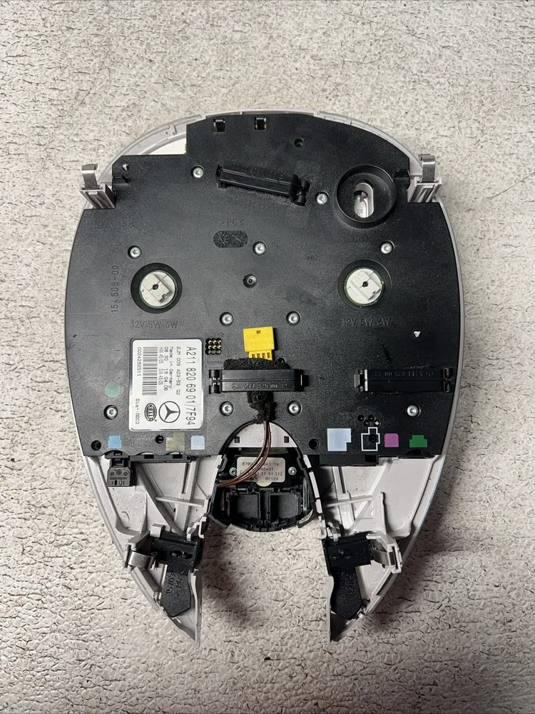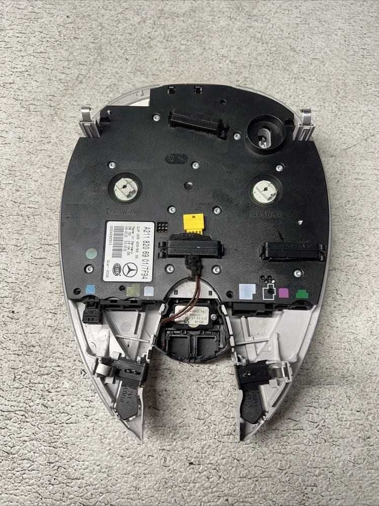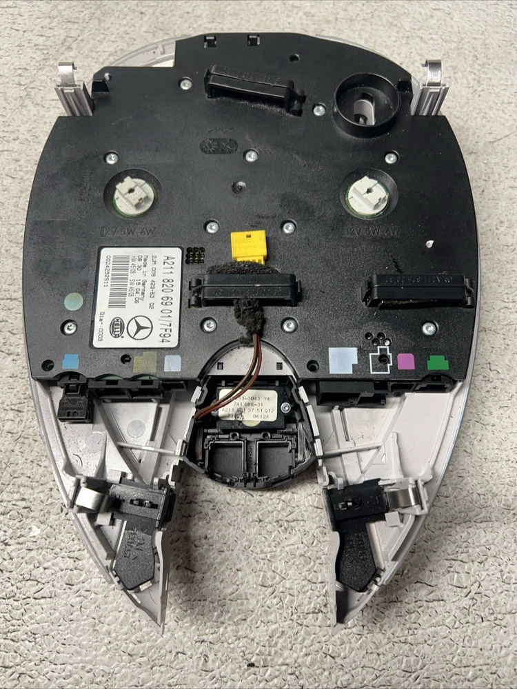 The product is a genuine OEM front overhead dome light for Mercedes-Benz W211 models from 2003-2009. It is designed specifically for the interior of the vehicle, featuring a gray color. The part numbers associated with this product include A2118206901 and A2118200123. This dome light is a perfect replacement for those looking to maintain the authentic look and functionality of their Mercedes-Benz vehicle.