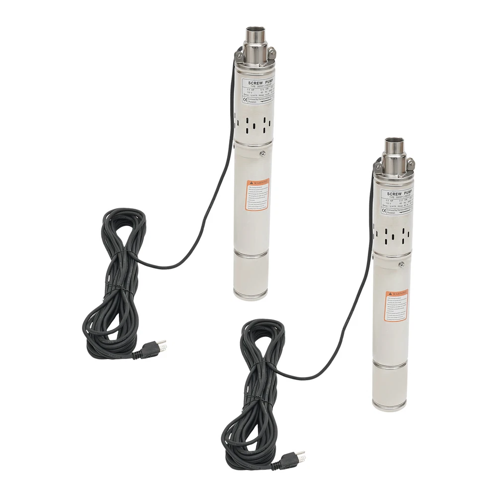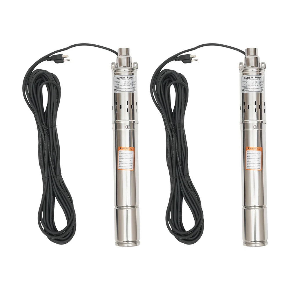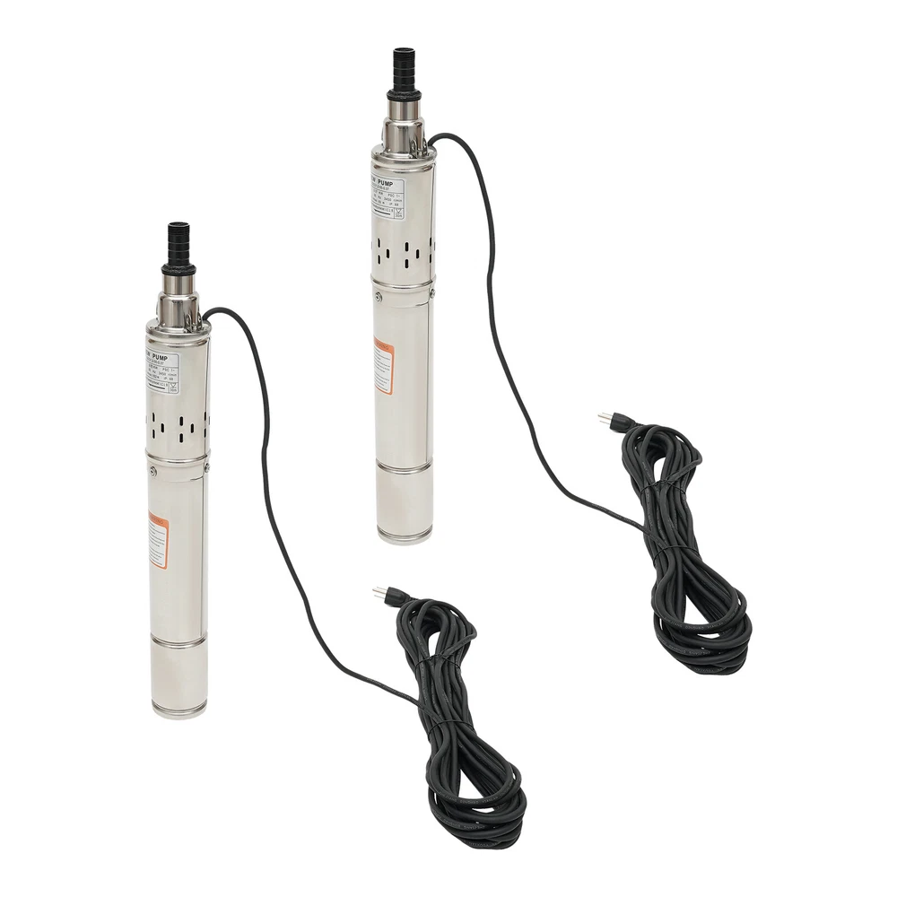 0.5HP/1.0HP Stainless Steel Deep Well Pump 3" Submersible Pump 115V 60Hz IP68 ❤Welcome❤ YLYO37-000000US 0.37KW, 0.5HP Description This deep well pump is precision cast from high-grade stainless steel, and its excellent resistance to pressure and corrosion ensures that the product remains stable and less prone to deformation in extreme environments. Once installed, simply place it in the water for fast pumping. Whether it is to meet the demand for pure water in daily life, or to help the irrigation project of vast farmland, it can be free and easy. Key Features Sturdy and Durable : High-quality stainless steel shell, copper motor, and polishing process make this product corrosion-resistant, wear-resistant , not easy to deform, and can ensure long-term use. Safety Guard : The IP68 waterproof rating ensures that the unit works completely submerged in water. It also features effective overheating protection to extend the product's lifespan. Powerful Pumping Tool : Whether you're looking for a solution to your industrial, farm, or home water supply, this deep well pump is one you can count on. It is good for a garden water source and a sprinkler for kids. You can use this pump to pump water from deep wells, reservoirs, canals, rivers, and other water-lifting projects. High Efficiency : It uses precision bearings and a high-quality motor to enable the pump to reach a speed of 3450r/min, which can lift water to 262.47ft, so a large amount of water( 1.8m³/h ) can be pumped quickly and efficiently. High Applicability : This product has no special requirements for wells and water pipes, which means that the pump can be used in steel tube wells, grey tube wells or earth wells. Where pressure permits, it can also be used with steel pipe, hose or plastic pipe as water mains. Low Noise : It uses a high-quality copper motor that generates only 30 dB of noise during operation. In addition, the submersible operation mechanism cleverly absorbs and reduces noise transmission by immersing the machine in the medium, creating a quiet and harmonious operating atmosphere. Simple Operation : This well pump comes with a 49.21ft cable that combines the motor and the pump into one. All you need to do is put the deep water pump into the well water and plug it in to pump out the water, which is very easy to operate. Small Footprint : This deep well pump is designed to resemble a carefully crafted underground gushing artifact thanks to its delicate and compact dimensions(3*22in). A great alternative to traditional, bulky deep-water well pumps, it is an efficient and portable way to dive into deep wells and harness the veins of underground water. Effortless Cleaning: Thanks to the smooth surface and simple structure, you can easily wipe off the dirt on it with a soft cloth. Details Double Lifting Eye Hole : It adopts the design of a double-lifting eye hole position, which is convenient to use with steel wire rope or nylon rope(not included) when going down the well. Long Power Cord : The 49.21 ft power cord makes you more convenient and flexible when connecting to the power source. Water Outlet : A 1-inch outlet makes it easy for you to connect the pumping head and hose, saving you time and effort. Application It is suitable for extracting groundwater from deep wells and can supply water to septic tanks, villages, homes, farms, camper vans, etc. It can also be used in rivers, reservoirs, canals, and other water-lifting projects. It is used for both farmland irrigation and mountainous areas for water supply for people and animals, and also for drainage of cities, factories, railways, and mines. Specification Type: 3QGD1.2-50-0.37 Color: Silver Material: Stainless Steel, Copper Process: Polishing Power Source: Electric Powered Voltage: 115V Frequency: 60Hz Plug Type: US Standard Power: 0.37KW,0.5HP Max. Flow Rate: 1.8m³/h Max. Lift: 80m/262.47ft Speed: 3450r/min Noise: 30dB Protection Class: IP68 Number of Impellers: 1 Pumping Head (D*H): 2.54*5.5cm/1*2.17inch Product Size(D*H): 7.5*56cm/3*22in Water Outlet Size: 2.54cm/1in Cable Wire Length: 15m/49.21ft Gross Weight: 7.3kg/16.09lbs Package Size: 63*15*8cm/24.8*5.9*3.15in Package Included 1*Deep Well Pump 1* Pumping Head 1*English Manual Notes Please do not use without water or with a low water level to avoid idling. Deep well pumps need to be installed vertically. Please install an additional check valve (not included) at the outlet to prevent backflow. Please read the user manual carefully before use and pay special attention to the safety precautions included. Please allow the slight color difference caused by the shooting light and 1-3cm error due to manual measurement, and make sure you do not mind before you place the order. YLYO37-000100US 0.75KW, 1.0HP Description This deep well pump is precision cast from high-grade stainless steel, and its excellent resistance to pressure and corrosion ensures that the product remains stable and less prone to deformation in extreme environments. Once installed, simply place it in the water for fast pumping. Whether it is to meet the demand for pure water in daily life, or to help the irrigation project of vast farmland, it can be free and easy. Key Features Sturdy and Durable : High-quality stainless steel shell, copper motor, and polishing process make this product corrosion-resistant, wear-resistant , not easy to deform, and can ensure long-term use. Safety Guard : The IP68 waterproof rating ensures that the unit works completely submerged in water. It also features effective overheating protection to extend the product's lifespan. Powerful Pumping Tool : Whether you're looking for a solution to your industrial, farm, or home water supply, this deep well pump is one you can count on. It is good for a garden water source and a sprinkler for kids. You can use this pump to pump water from deep wells, reservoirs, canals, rivers, and other water-lifting projects. High Efficiency : It uses precision bearings and a high-qualit