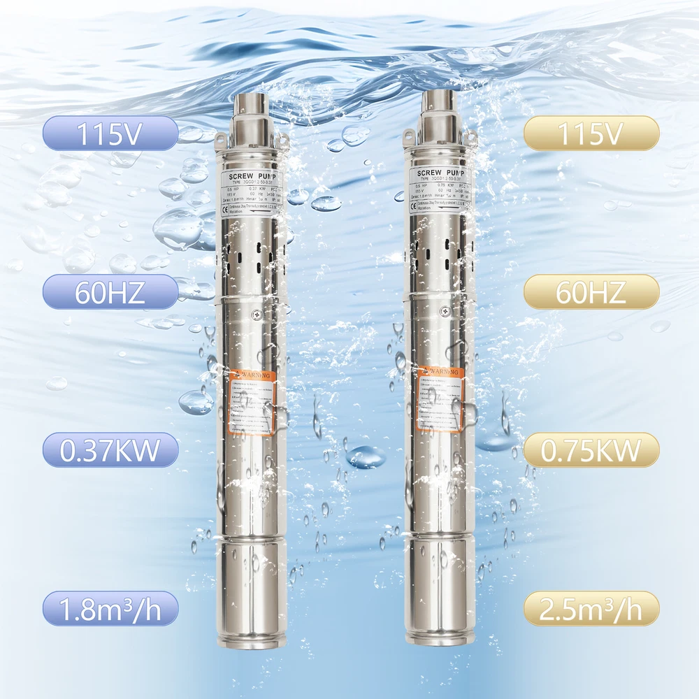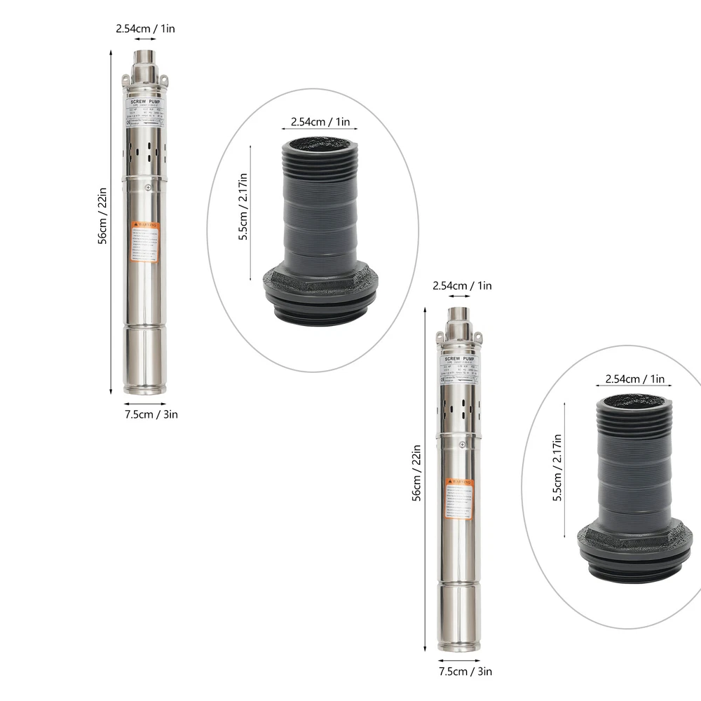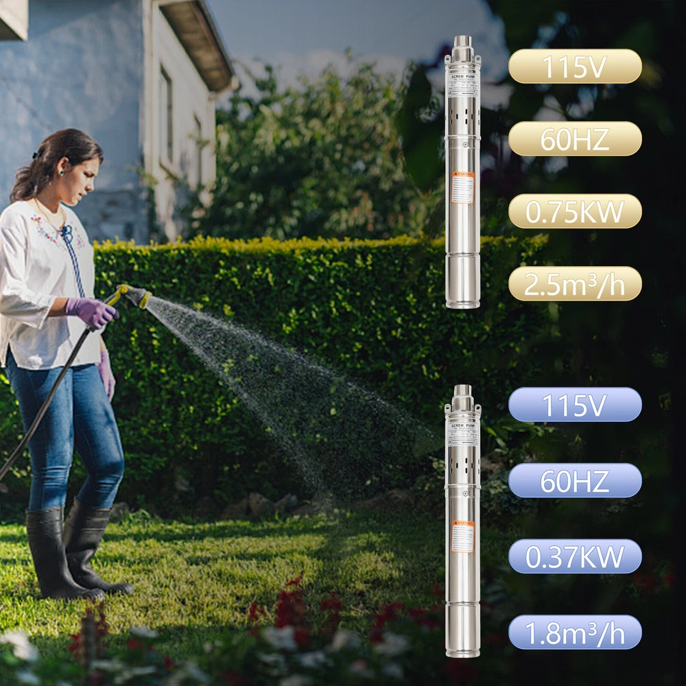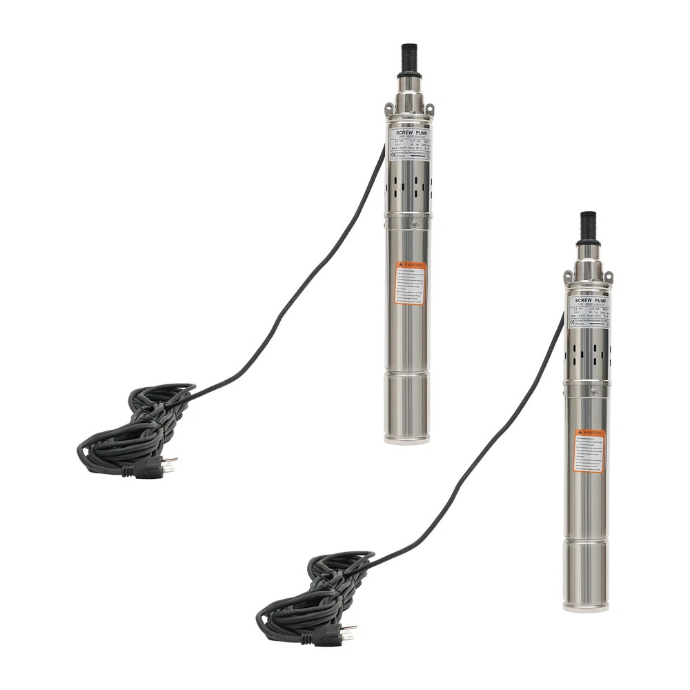 0.5HP/1.0HP Stainless Steel Deep Well Pump 3" Submersible Pump 115V 60Hz IP68 ❤Welcome❤ YLYO37-000000US 0.37KW, 0.5HP Description This deep well pump is precision cast from high-grade stainless steel, and its excellent resistance to pressure and corrosion ensures that the product remains stable and less prone to deformation in extreme environments. Once installed, simply place it in the water for fast pumping. Whether it is to meet the demand for pure water in daily life, or to help the irrigation project of vast farmland, it can be free and easy. Key Features Sturdy and Durable : High-quality stainless steel shell, copper motor, and polishing process make this product corrosion-resistant, wear-resistant , not easy to deform, and can ensure long-term use. Safety Guard : The IP68 waterproof rating ensures that the unit works completely submerged in water. It also features effective overheating protection to extend the product's lifespan. Powerful Pumping Tool : Whether you're looking for a solution to your industrial, farm, or home water supply, this deep well pump is one you can count on. It is good for a garden water source and a sprinkler for kids. You can use this pump to pump water from deep wells, reservoirs, canals, rivers, and other water-lifting projects. High Efficiency : It uses precision bearings and a high-quality motor to enable the pump to reach a speed of 3450r/min, which can lift water to 262.47ft, so a large amount of water( 1.8m³/h ) can be pumped quickly and efficiently. High Applicability : This product has no special requirements for wells and water pipes, which means that the pump can be used in steel tube wells, grey tube wells or earth wells. Where pressure permits, it can also be used with steel pipe, hose or plastic pipe as water mains. Low Noise : It uses a high-quality copper motor that generates only 30 dB of noise during operation. In addition, the submersible operation mechanism cleverly absorbs and reduces noise transmission by immersing the machine in the medium, creating a quiet and harmonious operating atmosphere. Simple Operation : This well pump comes with a 49.21ft cable that combines the motor and the pump into one. All you need to do is put the deep water pump into the well water and plug it in to pump out the water, which is very easy to operate. Small Footprint : This deep well pump is designed to resemble a carefully crafted underground gushing artifact thanks to its delicate and compact dimensions(3*22in). A great alternative to traditional, bulky deep-water well pumps, it is an efficient and portable way to dive into deep wells and harness the veins of underground water. Effortless Cleaning: Thanks to the smooth surface and simple structure, you can easily wipe off the dirt on it with a soft cloth. Details Double Lifting Eye Hole : It adopts the design of a double-lifting eye hole position, which is convenient to use with steel wire rope or nylon rope(not included) when going down the well. Long Power Cord : The 49.21 ft power cord makes you more convenient and flexible when connecting to the power source. Water Outlet : A 1-inch outlet makes it easy for you to connect the pumping head and hose, saving you time and effort. Application It is suitable for extracting groundwater from deep wells and can supply water to septic tanks, villages, homes, farms, camper vans, etc. It can also be used in rivers, reservoirs, canals, and other water-lifting projects. It is used for both farmland irrigation and mountainous areas for water supply for people and animals, and also for drainage of cities, factories, railways, and mines. Specification Type: 3QGD1.2-50-0.37 Color: Silver Material: Stainless Steel, Copper Process: Polishing Power Source: Electric Powered Voltage: 115V Frequency: 60Hz Plug Type: US Standard Power: 0.37KW,0.5HP Max. Flow Rate: 1.8m³/h Max. Lift: 80m/262.47ft Speed: 3450r/min Noise: 30dB Protection Class: IP68 Number of Impellers: 1 Pumping Head (D*H): 2.54*5.5cm/1*2.17inch Product Size(D*H): 7.5*56cm/3*22in Water Outlet Size: 2.54cm/1in Cable Wire Length: 15m/49.21ft Gross Weight: 7.3kg/16.09lbs Package Size: 63*15*8cm/24.8*5.9*3.15in Package Included 1*Deep Well Pump 1* Pumping Head 1*English Manual Notes Please do not use without water or with a low water level to avoid idling. Deep well pumps need to be installed vertically. Please install an additional check valve (not included) at the outlet to prevent backflow. Please read the user manual carefully before use and pay special attention to the safety precautions included. Please allow the slight color difference caused by the shooting light and 1-3cm error due to manual measurement, and make sure you do not mind before you place the order. YLYO37-000100US 0.75KW, 1.0HP Description This deep well pump is precision cast from high-grade stainless steel, and its excellent resistance to pressure and corrosion ensures that the product remains stable and less prone to deformation in extreme environments. Once installed, simply place it in the water for fast pumping. Whether it is to meet the demand for pure water in daily life, or to help the irrigation project of vast farmland, it can be free and easy. Key Features Sturdy and Durable : High-quality stainless steel shell, copper motor, and polishing process make this product corrosion-resistant, wear-resistant , not easy to deform, and can ensure long-term use. Safety Guard : The IP68 waterproof rating ensures that the unit works completely submerged in water. It also features effective overheating protection to extend the product's lifespan. Powerful Pumping Tool : Whether you're looking for a solution to your industrial, farm, or home water supply, this deep well pump is one you can count on. It is good for a garden water source and a sprinkler for kids. You can use this pump to pump water from deep wells, reservoirs, canals, rivers, and other water-lifting projects. High Efficiency : It uses precision bearings and a high-qualit