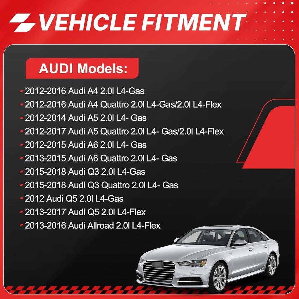 OEM Replacement ===== This PCV valve and valve breather hose kit is a direct replacement for OEM part numbers 06H103495AE, 06H103495J, and 06H103495AK. Please verify the compatibility of the part numbers with your specific vehicle before purchasing Precise Fit ===== Specifically designed for 2012-2018 Audi A4 A5 A6 Q3 Q5 Quattro Allroad 2.0L models, this kit provides a perfect fit and compatibility with the specified vehicle Efficient Oil Separation ===== This PCV valve engine crankcase vent valve oil separator effectively separates oil from the crankcase gases, preventing oil contamination in the intake system and ensuring clean airflow High-Quality Construction ===== Made from premium materials, this kit offers excellent durability and reliability, ensuring long-lasting performance and resistance to heat and oil degradation Comprehensive Kit ===== This kit includes both the PCV valve and the valve breather hose, providing a complete solution for maintaining the proper function of the crankcase ventilation system