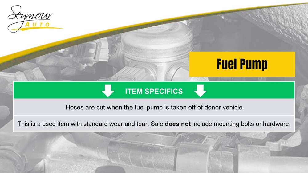 Hollander Welcome to our eBay store! Fuel Pump Assembly Classic Style 4WD Fits 07-17 COMPASS 881816 Description ******* SAME DAY SHIPPING ******** Donor Vehicle Model : COMPASS Year : 2015 Mileage : 134000 (0 = not available or unknown) Stock Number : 231665 Notes : This Part Will Fit These Makes And Models With These Options CALIBER 07-09 Pump Assembly; tank mounted, gasoline, AWD COMPASS 07-16 Pump Assembly; 4WD COMPASS 17 (pump assembly), classic style (vertical rear door handle), 4WD PATRIOT 07-17 Pump Assembly; 4WD About Us Payment Shipping Returns Warranty About Us We are a locally owned business with over 70 years of experience in the automotive industry with an extensive collection of used car parts and accessories for thousands of different vehicles. Our knowledgeable and caring staff work hard every day making sure all of our parts are high quality and functional to fit your needs. We are happy to verify fitment for you prior to purchase via your vehicle’s VIN (Vehicle Identification Number). Please contact us with any questions prior to purchasing. Orders are sent to the shipping department throughout the day therefore we cannot guarantee adjustments to orders after payment is received. Payment Payment details: Please contact us with any questions prior to purchasing. Orders are sent to the shipping department throughout the day therefore we cannot guarantee adjustments to orders after payment is received. All orders must be paid in full prior to shipment. Payments are processed through eBay by eBay. If payment is not received within a reasonable time from when the order is placed, it will be cancelled without notice. All purchase prices are final. No price match or discount can be made while an item is awaiting payment. Shipping Shipping Details: Items are shipped after being paid in full. We only ship to US addresses within the continental 48 states. Shipping to AK, HI and PO Box's require a special rate and are subject to additonal charges. All parts listed with Free Shipping have a one day handling time and may not be picked up by the carrier the same day the part is ordered. Any estimated delivery dates provided are only estimates and are not guaranteed to be accurate. We are not responsible for any delays with UPS, Fed-Ex or USPS. We must be contacted same day if an item is received damaged. All address changes must be completed before the part is shipped. Address changes that take place after the part has been shipped are subject to an address change fee. Overnight and expedited shipping options are available for an additional cost. All parts listed as, Pick Up Only , can be shipped if the shipping cost is covered by the buyer. All parts listed as, Pick Up Only , will be held at Seymour Auto Wrecking (107 New Haven Rd, Seymour CT 06483) for the buyer. International orders are shipped via eBay’s Global Shipping Program. We are not responsible for any shipping charge associated with eBay's Global Shipping Program. We are unable to change the delivery address on all orders shipped through eBay's Global Shipping Program. eBay must be contacted directly. We are not responsible for any delays or issues reagrding any item purchased and shipped through eBay's Global Shipping Program. Returns All parts sold have a standard 30-Day return window. Return Details: We must be contacted within 30 days of the carrier provided delivery date for the return to be accepted. No return wil be accepted if contacted after 30 days from the carrier provided delivery date. We may require more information reagrding a return request. ex: pictures, receipts, videos, etc. A free return label will not be provided for remorse return reasons. ex: changed mind, ordered by mistake/by accident, didn't like it The buyer must ship the return within 21 days of receiving a return label or starting a return. All returns must be sent in the appropriote sized box with adequate packaging. Any return received damaged may be eligible for a refund deduction. All returns made must be occompanied with a return reason. All returns that are received without a reason will not be processed. If a return label is issued by eBay, we are not responsible for reimbursing the buyer for the cost of the label. In the event the part returned does not match the original part sent, a case will be opened up with eBay. Warranty All parts come with our standard 6-month warranty. Please contact us for more details prior to ordering. The warranty begins as soon as the buyer takes possession of the part. Standard 6-Month Warranty: If a part is proven to be defective within the 6 month warranty period, a replacement or refund will be sent at our discretion. We are not responsible or liable for any incidental or consequential loss or damage. We will require more information reagrding a warranty request. ex: pictures, receipts, videos, etc. No warranty claims or reimbursement on labor. All body parts are sold as is. Any part that is damaged or altered by the buyer will not be eligible for warranty or return. No warranty claim can be made based on color or trim package. We are not responsible for the buyer's error. ex: Accidental orders, late address changes. We do not offer an extended warranty with eBay. If you experience any issue with your part, please contact us prior to attempting to repair or remove the part. Failure to do so will void the warranty. We make no claim as to the suitability of any part for any particular purpose. The buyer is responsible for determining the suitability of the part purchased for its intended purpose. In the event an incorrect part is shipped, please contact us immediatley so an exchange can be processed. Copyright © 2022, All Rights Reserved. Template Design & Developed By: Copyright © 2022, All rights reserved. Design & Developed By : eFusionWorld