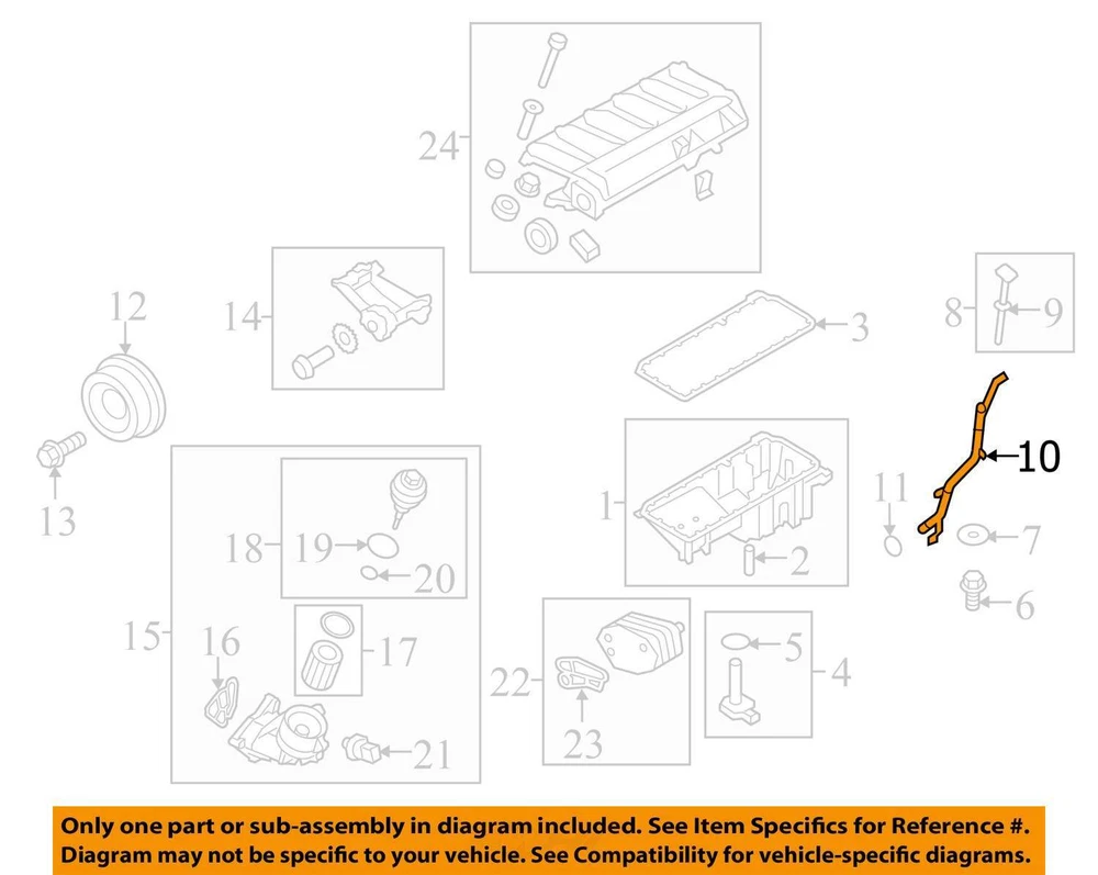 09-13 OEM BMW E70 X5 Diesel Engine M57Y Oil Dipstick w Guide Tube Pipe Line Hose SKU: 32461 Brand: BMW Condition: Used Notes: 30 Day warranty! MPN: 7800688 Manufacturer Part Number: 11437800688 OE/OEM Part Number: 7800688 Interchange Part Number: 7800688 We're on Instagram! Follow us! oe_mgarage All parts are used unless otherwise noted! Please understand that being that parts are used there may be some wear and tear & scratches etc. We cannot guarantee the condition of paint & or that paint color will be an exact match as yours. We try to show as much of the condition as possible through photos and notes! Original Car: 2012 BMW X5 Series: E70 Vin Number: 5UXZW0C51CL669652 Engine: M57Y Transmission: 1 Part number: 7800688, 11437800688 Notes: 30 Day warranty! SKU: 32461 Location: PB24 IF ITEM IS MARKED AS FREIGHT SHIPPING AND YOU ARE SHIPPING TO A RESIDENTIAL ADDRESS OR A BUSINESS WITHOUT A FORKLIFT/LOADING DOCK Our shipping carriers charge extra fees for these deliveries! Please inquire BEFORE purchasing We will invoice you for it post purchase Thank you 90 day warranty on Engines purchased through eBay! 30 day warranty otherwise Engine is guaranteed to turn & the cylinder block is not cracked & and the cylinder head is not cracked Engine warranty details: Any maintenance items such as gaskets & fluids & seals & filters & spark plugs & belts & aluminum bolts (the ones holding valve cover & oil pan & etc.) are not warrantied and must be replaced Failure to replace valve cover gasket & oil pan gasket & new bolts for said gaskets voids the warranty Any aftermarket or performance parts or software present on the car voids the warranty Engine components such as timing chain & vanos gears & vacuum pump & chain guides are not warrantied. Other engine components external to the cylinder block and cylinder head are not warrantied. Any parts left on the engine are not warrantied and are for installation convenience only & buyer assumes all risk and responsibility reusing them. Overheating engine voids all warranties & Low oil or oil starvation voids all warranties for engine All work must be performed by a licensed & ASE certified mechanic shop or BMW dealership & failure will result in voiding all warranties Warranty covers the cost of the item! It does not cover shipping or labor! Used condition items may have minor imperfections. Please look at pictures for details! And understand that this is a USED part after all! Compatibility is the responsibility of the customer to ensure!! Please feel free to reach out with any questions!!