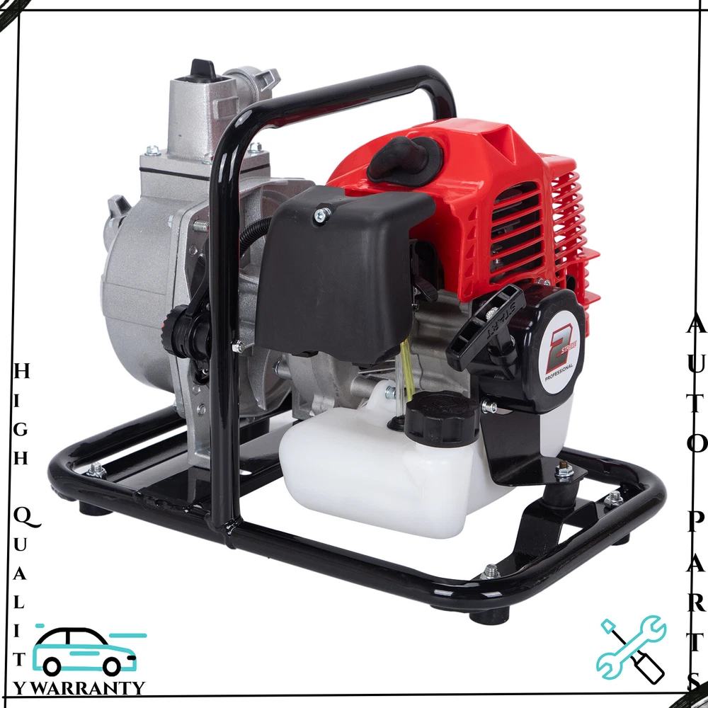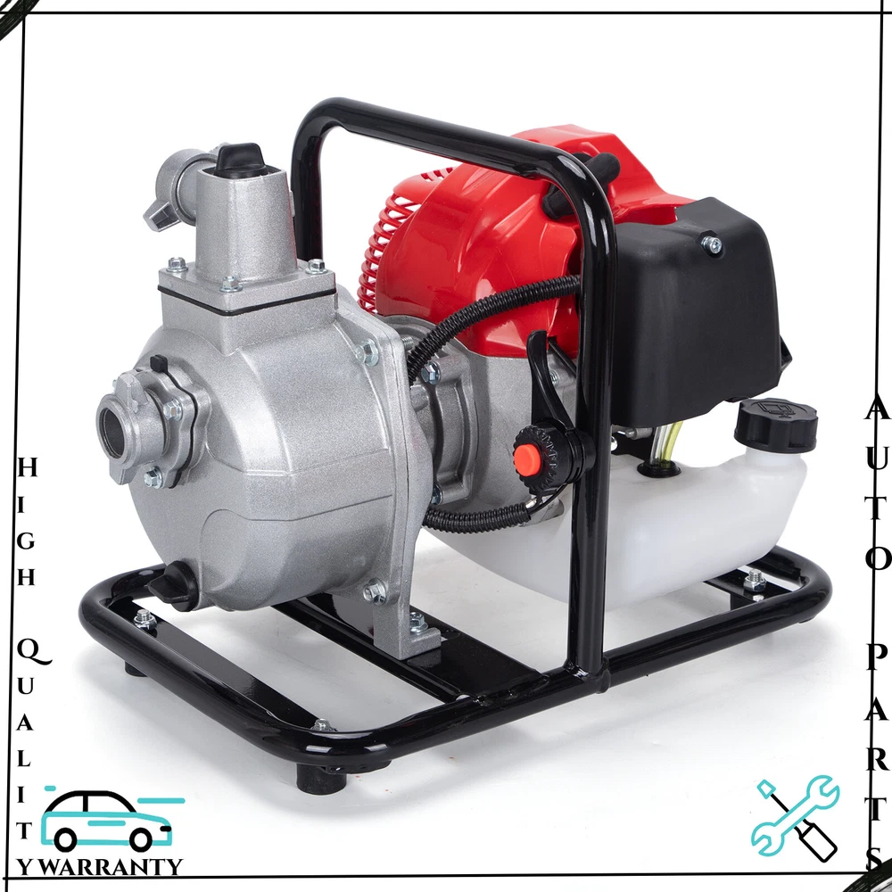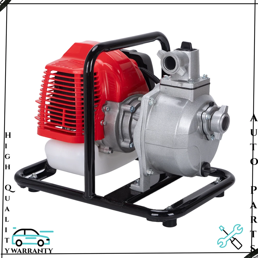 Description Efficient and simple irrigation or drainage methods are one of the pursuits of many farmers, rescue teams, and fruit farmers. This portable water pump is a good choice! It combines high power with a lightweight body, making it easy for you to carry around and start working efficiently wherever you need it. It will be a good helper in the field and a good partner in emergency repair work. Key Features - High Efficiency : It adopts a strong two-stroke engine, with larger and stronger cylinder strength. The 1400W, 40.2cc engine has a maximum speed of 6500r/min, achieving 282.5ft³ hourly flow rate and 98ft lift. With its help, your various irrigation and drainage tasks can be efficiently solved. - Durable & Sturdy: The aluminum alloy pump body, iron frame, and ABS casing all have high hardness, high wear resistance, corrosion resistance, and rust resistance , achieving a longer service life. - Large Fuel Tank & Low Fuel Consumption: The 0.22gal fuel tank allows you to work for a longer time at once, saving you time and effort. A high-quality carburetor ensures a 610g/Kw.h of fuel rate, reducing fuel consumption. - User-friendly Design: The drawstring start, one-click shutdown, and gear controlled speed regulation design simplify various operations while ensuring safety, making it easier and more reassuring for you to use. - Lightweight & Portable: It is lightweight(15.4 lbs) and portable( 14.4(W)*17.7(L)*12.6(H)in ), combined with a convenient handle located in the middle, allowing you to easily lift it with one hand to the place you need and start working. - Safety Guard: The check valve can effectively prevent backflow, providing higher safety for your use. Oil bubbles and visible fuel pipes make it easy to track the delivery of fuel and achieve a safe start-up. - High Stability: The quadrilateral base and enlarged anti-slip pads provide greater stability and effective vibration reduction, ensuring better performance in harsh environments. - Silencing Hood: The internal silencing hood effectively alleviates the noise generated during operation, maintaining noise within an acceptable range without affecting other activities. - Protective Packaging: This product comes in a custom air column bag that resists common compression and falls to prevent product damage in transit as much as possible. Details -Heat Dissipation Holes: Widely distributed and efficient heat dissipation holes can quickly dissipate the heat generated by the machine during operation, preventing damage caused by high temperatures and ensuring stable operation. - Air & Water Filters: The filters can effectively isolate impurities in water and air, prevent blockage of water pipes and water pumps, and improve the working efficiency. - Large Diameter Inlet/Outlet: The 1-inch large diameter inlet/outlet can be paired with most of the water pipes on the market, with high universality and more effective use. - Drainage Port: It can easily discharge excess water and impurities from the pump, extending its service life. Application It can provide reliable drainage or irrigation solutions for homeowners, farmers, construction personnel, etc. It is mainly used for pumping irrigation of vegetable gardens and flower beds, garden lawns, outdoor pumping and drainage operations, irrigation and fertilization of crops and green seedlings, flood control and drainage, tunnel drainage, etc. Specifications Material: Aluminum Alloy, Iron, ABS Color: Black, Red, Grey Style: Modern Assembly Required: Yes Engine Type: Single Cylinder, Air-cooled, 2-stroke Number of Items: 1 Displacement: 40.2cc Max. Lift: 30m/98ft Max. Suction: 7m/23ft Max. Power: 1400W Max. Speed: 6500r/min Gasoline: No.90 and Above Flow Rate: 8m³/ 282.5ft³/ H Fuel Tank Capacity: 0.85L/0.22gal Inlet/Outlet Diameter: 2.5cm/1in Fuel Consumption Rate: 610g/1.34lbs/Kw.h Fuel Type: Mixed Oil (25 Gasoline : 1 2-stroke Engine Oil) Gross Weight: 9.79kg/21.6kbs Net Weight: 8.91kg/19.6lbs Product Size: 40*28*30cm/15.74*11*11.81in Package Size: 40*33*33cm/15.74*13*13in Package Included 1*Water Pump 1*Fuel Oil Mixing Bottle 1*Tool Kit 1*Filter 1*Funnel 1*Extra Air Filter 1*English Manual All Accessories for Assembly Notes Please carefully read the manual and strictly follow the precautions to have a better experience. Please use #90 or above gasolin e for this product and mix it with two-stroke engine oil in a ratio of 25:1. Please note that water must be added to this product before use. Before starting the machine, please check if the machine is complete and check the coupling to see if the internal drive is damaged. After using, please idle for 2-3 minutes and wait for the engine temperature to decrease before turning it off to improve its service life. Please drain the fuel tank when not in use for a long time. Please allow the slight color difference caused by the shooting light and 1-3cm error due to manual measurement, and make sure you do not mind before you order.