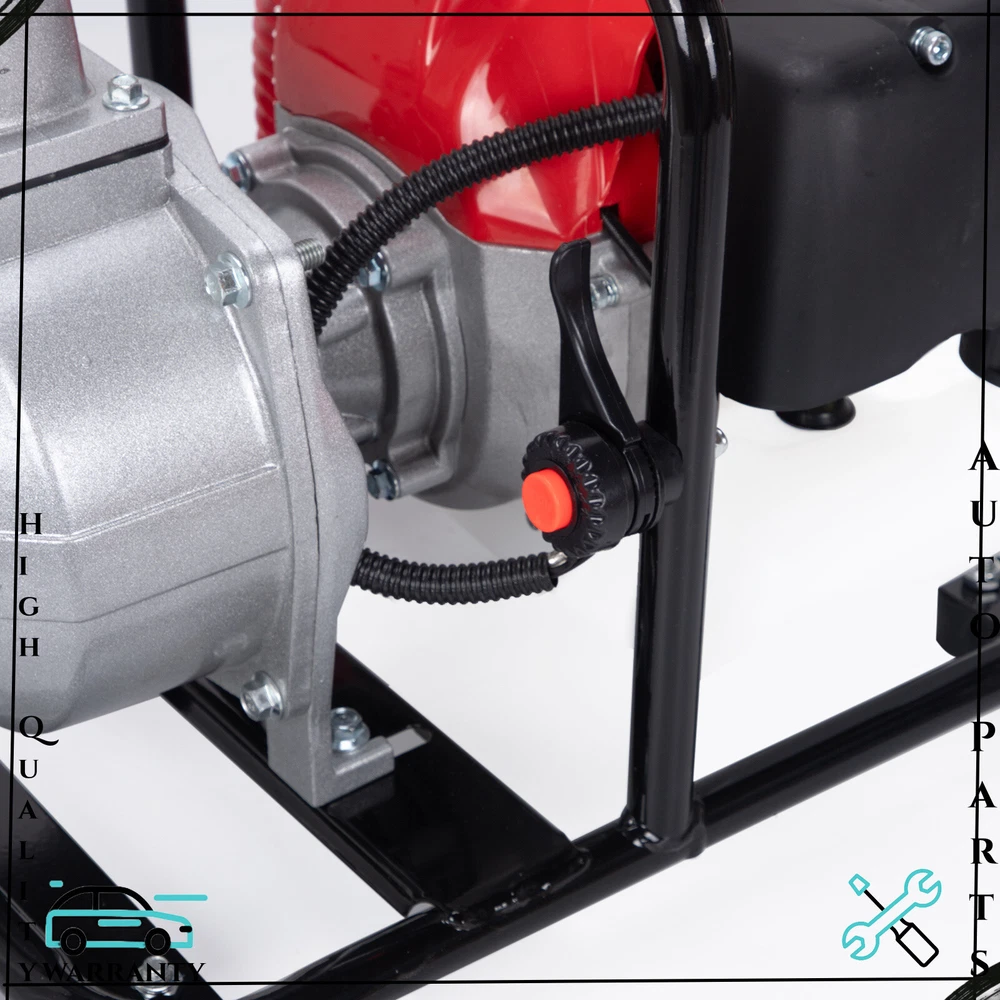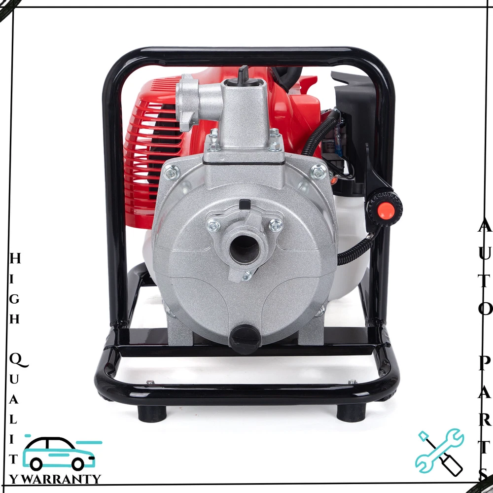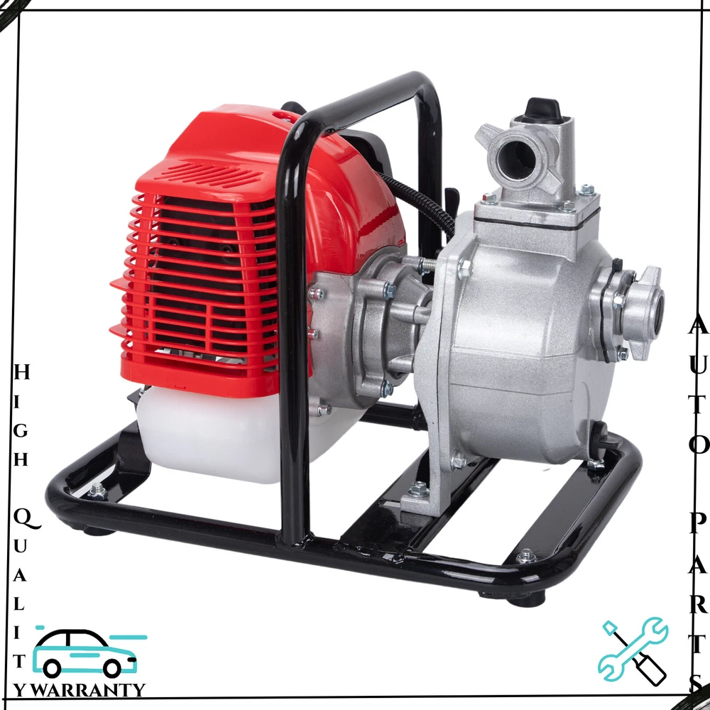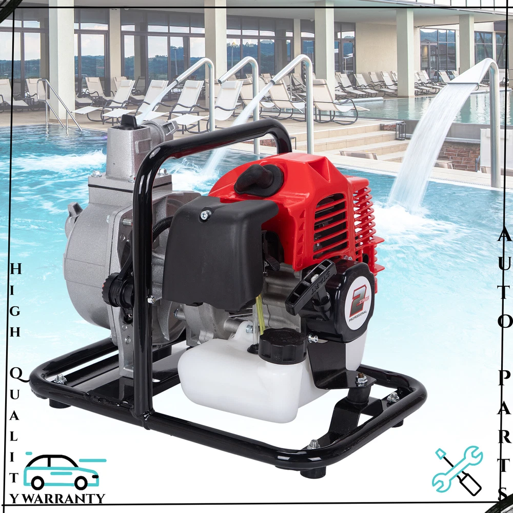 Description Efficient and simple irrigation or drainage methods are one of the pursuits of many farmers, rescue teams, and fruit farmers. This portable water pump is a good choice! It combines high power with a lightweight body, making it easy for you to carry around and start working efficiently wherever you need it. It will be a good helper in the field and a good partner in emergency repair work. Key Features - High Efficiency : It adopts a strong two-stroke engine, with larger and stronger cylinder strength. The 1400W, 40.2cc engine has a maximum speed of 6500r/min, achieving 282.5ft³ hourly flow rate and 98ft lift. With its help, your various irrigation and drainage tasks can be efficiently solved. - Durable & Sturdy: The aluminum alloy pump body, iron frame, and ABS casing all have high hardness, high wear resistance, corrosion resistance, and rust resistance , achieving a longer service life. - Large Fuel Tank & Low Fuel Consumption: The 0.22gal fuel tank allows you to work for a longer time at once, saving you time and effort. A high-quality carburetor ensures a 610g/Kw.h of fuel rate, reducing fuel consumption. - User-friendly Design: The drawstring start, one-click shutdown, and gear controlled speed regulation design simplify various operations while ensuring safety, making it easier and more reassuring for you to use. - Lightweight & Portable: It is lightweight(15.4 lbs) and portable( 14.4(W)*17.7(L)*12.6(H)in ), combined with a convenient handle located in the middle, allowing you to easily lift it with one hand to the place you need and start working. - Safety Guard: The check valve can effectively prevent backflow, providing higher safety for your use. Oil bubbles and visible fuel pipes make it easy to track the delivery of fuel and achieve a safe start-up. - High Stability: The quadrilateral base and enlarged anti-slip pads provide greater stability and effective vibration reduction, ensuring better performance in harsh environments. - Silencing Hood: The internal silencing hood effectively alleviates the noise generated during operation, maintaining noise within an acceptable range without affecting other activities. - Protective Packaging: This product comes in a custom air column bag that resists common compression and falls to prevent product damage in transit as much as possible. Details -Heat Dissipation Holes: Widely distributed and efficient heat dissipation holes can quickly dissipate the heat generated by the machine during operation, preventing damage caused by high temperatures and ensuring stable operation. - Air & Water Filters: The filters can effectively isolate impurities in water and air, prevent blockage of water pipes and water pumps, and improve the working efficiency. - Large Diameter Inlet/Outlet: The 1-inch large diameter inlet/outlet can be paired with most of the water pipes on the market, with high universality and more effective use. - Drainage Port: It can easily discharge excess water and impurities from the pump, extending its service life. Application It can provide reliable drainage or irrigation solutions for homeowners, farmers, construction personnel, etc. It is mainly used for pumping irrigation of vegetable gardens and flower beds, garden lawns, outdoor pumping and drainage operations, irrigation and fertilization of crops and green seedlings, flood control and drainage, tunnel drainage, etc. Specifications Material: Aluminum Alloy, Iron, ABS Color: Black, Red, Grey Style: Modern Assembly Required: Yes Engine Type: Single Cylinder, Air-cooled, 2-stroke Number of Items: 1 Displacement: 40.2cc Max. Lift: 30m/98ft Max. Suction: 7m/23ft Max. Power: 1400W Max. Speed: 6500r/min Gasoline: No.90 and Above Flow Rate: 8m³/ 282.5ft³/ H Fuel Tank Capacity: 0.85L/0.22gal Inlet/Outlet Diameter: 2.5cm/1in Fuel Consumption Rate: 610g/1.34lbs/Kw.h Fuel Type: Mixed Oil (25 Gasoline : 1 2-stroke Engine Oil) Gross Weight: 9.79kg/21.6kbs Net Weight: 8.91kg/19.6lbs Product Size: 40*28*30cm/15.74*11*11.81in Package Size: 40*33*33cm/15.74*13*13in Package Included 1*Water Pump 1*Fuel Oil Mixing Bottle 1*Tool Kit 1*Filter 1*Funnel 1*Extra Air Filter 1*English Manual All Accessories for Assembly Notes Please carefully read the manual and strictly follow the precautions to have a better experience. Please use #90 or above gasolin e for this product and mix it with two-stroke engine oil in a ratio of 25:1. Please note that water must be added to this product before use. Before starting the machine, please check if the machine is complete and check the coupling to see if the internal drive is damaged. After using, please idle for 2-3 minutes and wait for the engine temperature to decrease before turning it off to improve its service life. Please drain the fuel tank when not in use for a long time. Please allow the slight color difference caused by the shooting light and 1-3cm error due to manual measurement, and make sure you do not mind before you order.