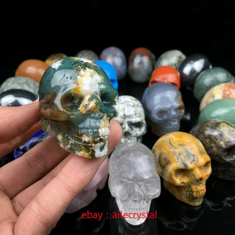 1.8inch Natural Crystal Hand carved Skull healing Gemstone Carving 1PC 100% new quality Fine sculpture This product can be used as a gift to send people, suitable for home decoration, office decoration. Of course, you can also collect it yourself. It's the best art! material:Natural Quartz Crystal color:as shown Weight: About 80-200g Size: about 45*30*35cm (L * w * h) Note: random delivery please allow the 1-3mm error due to manual measurements. The photos are for reference only, and you'll get similar ones because the natural stones aren't exactly the same But We promise you the best