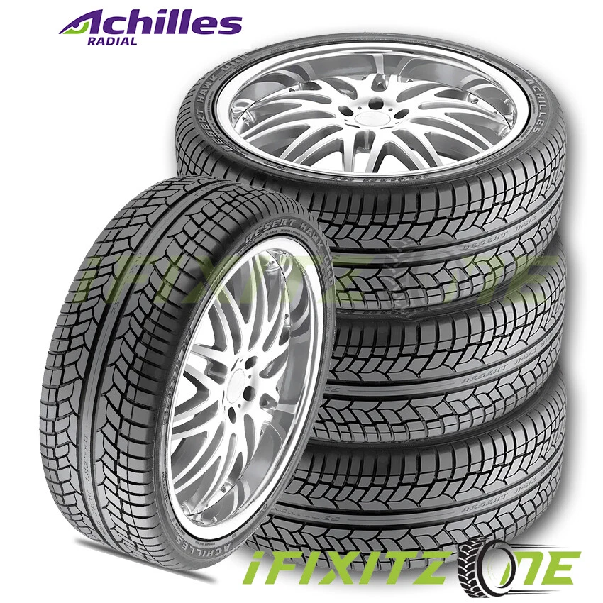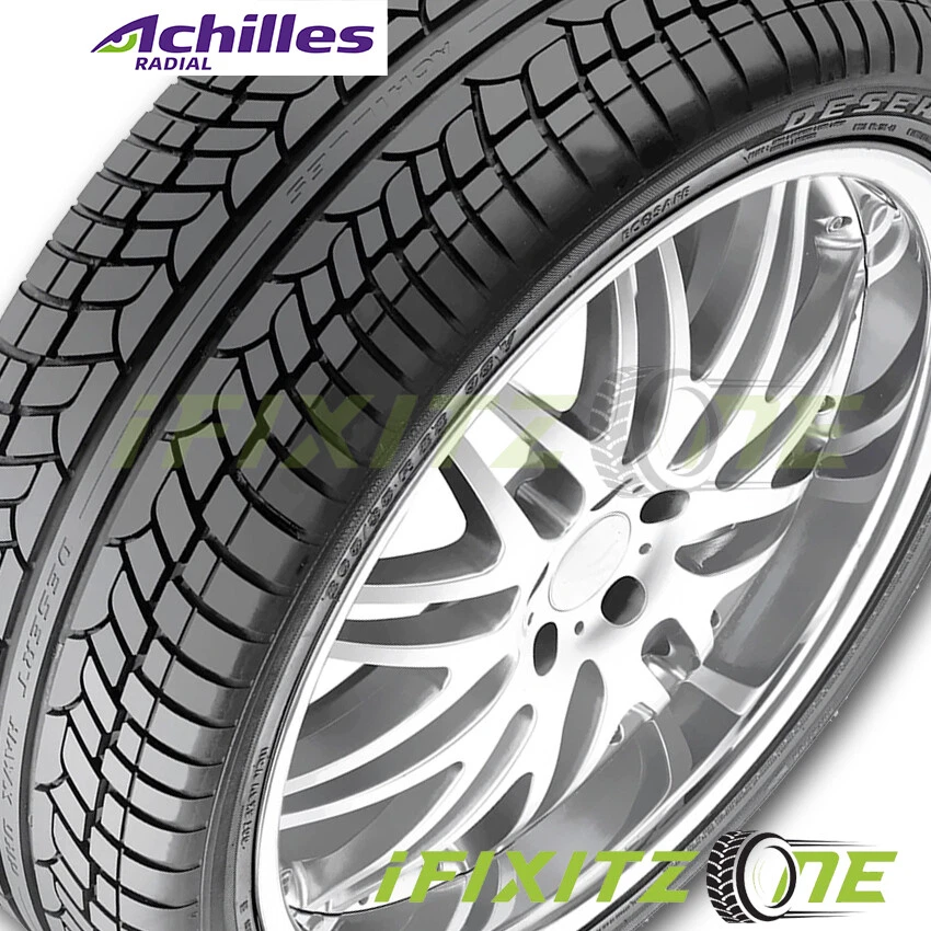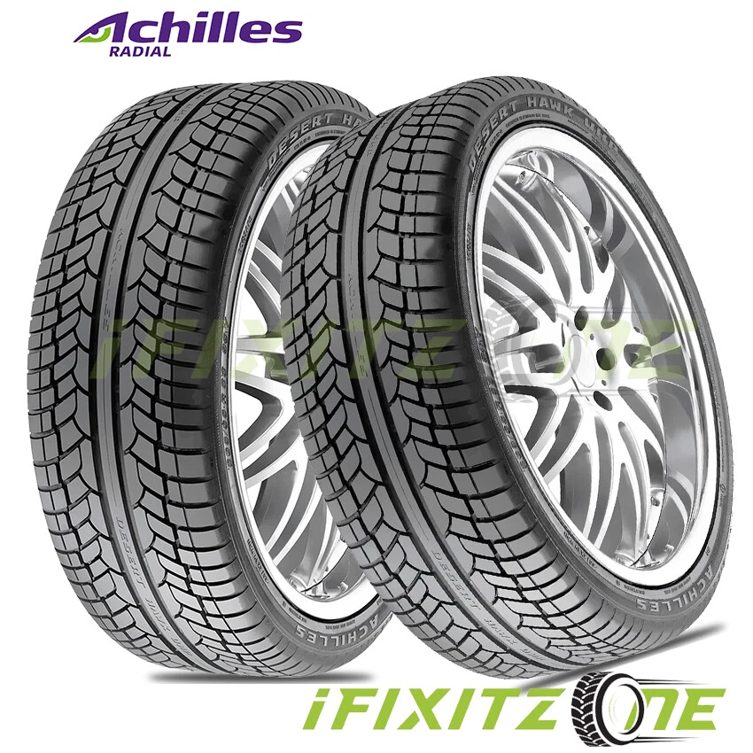The Achilles Desert Hawk UHP tire is a premium quality performance tire for SUVs. Drivers get the best of a long-lasting touring tire combined with a heavy duty truck tire. It has a directional tread design that provides good traction for both wet and dry road conditions, and a solid center rib that delivers straight line stability and improved high speed handling. On the side of the tire there is a rim guard. This raised rib just above the top of where the wheel touches the tire provides wheel damage protection. The tread rubber itself has Achilles Tire's patented High Disperse Silica Compound, which gives excellent handling on wet road conditions, very low rolling resistance for better fuel economy, as well as longer tread wear-life. 35,000 mile warranty. ifixitzone