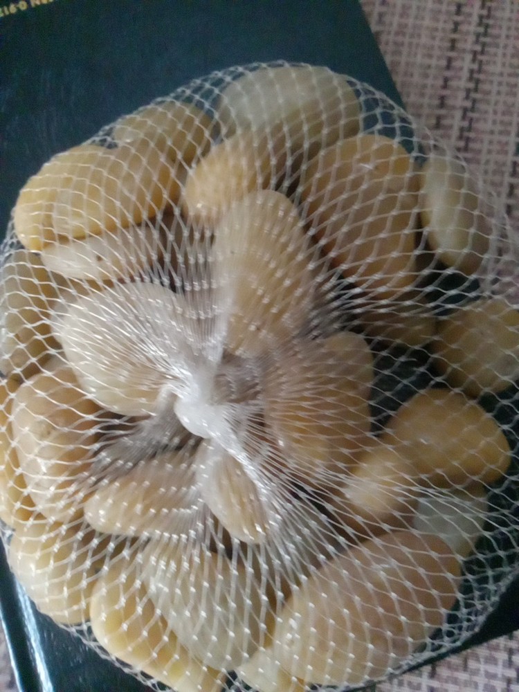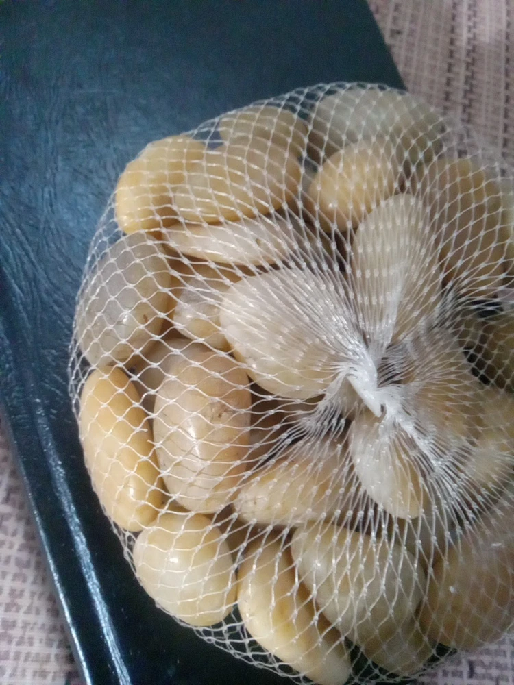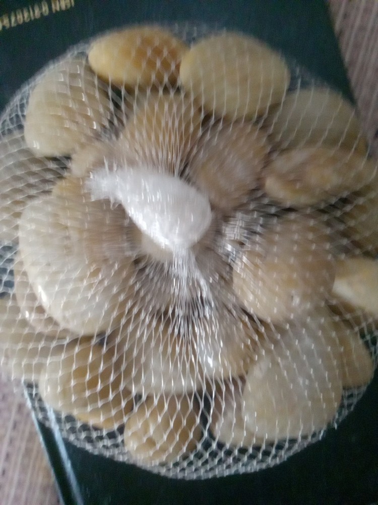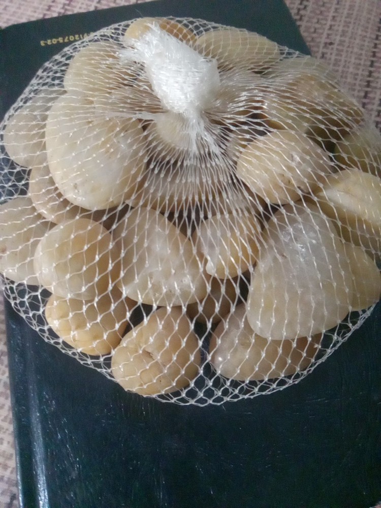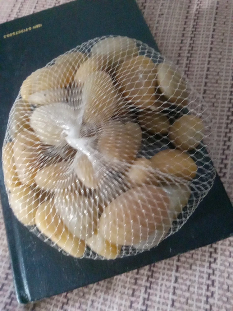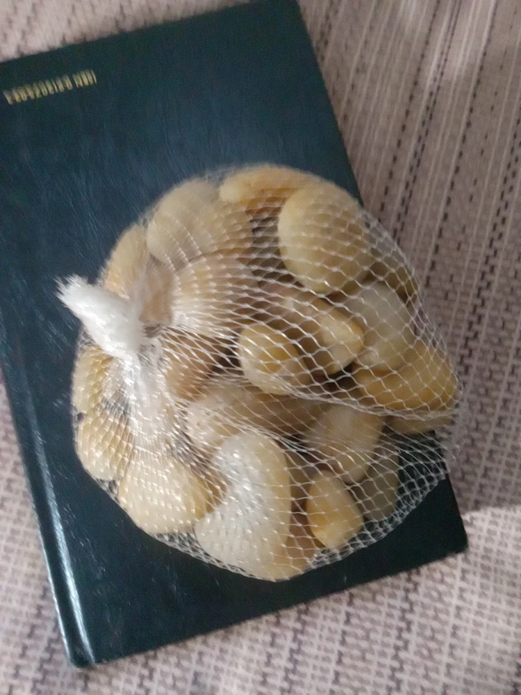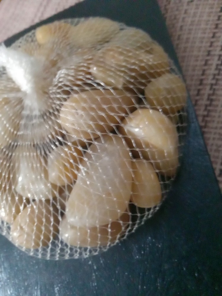 This product is a bag of small glossy tan aquarium rocks that can be used to decorate fish tanks. The rocks add a natural and decorative element to the aquarium, providing a unique and elegant look. They are small in size, making them suitable for smaller aquariums or as a complement to other decorations. The glossy finish gives the rocks a modern and sleek appearance, enhancing the overall aesthetic of the aquarium. Perfect for enhancing the visual appeal of any fish tank. NEW WITHOUT TAGS, NEVER BEEN OPENED!