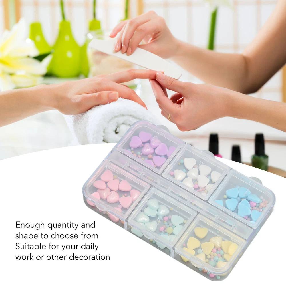 Feature: 1. DAZZLING AND ATTRACTIVE: Nail decorations are available in a variety of sizes to achieve different nail art designs that will make your nails more dazzling and attractive. 2. SAFE TO WEAR: Resin nail art decorations are safe to wear on your nails and are made of resin material that will not fade for long term use. 3. EASY TO STORE AND CARRY: Nail art decorations design heart shape adds a lovely feeling. Very easy to store and carry, suitable for travel and performance. 4. ENOUGH QUANTITY AND SHAPES: Heart nail art ornaments have enough quantity and shape options for your daily work or other decorations. 5. MULTIPURPOSE USE: Heart nail art decor can also decorate other DIY projects such as phone cases, guitars, hair bands, bags or whatever you want. Specification: Item Type: Heart Nail Art Decor Material: Resin Package List: 1 Box x Heart Nail Art Decor