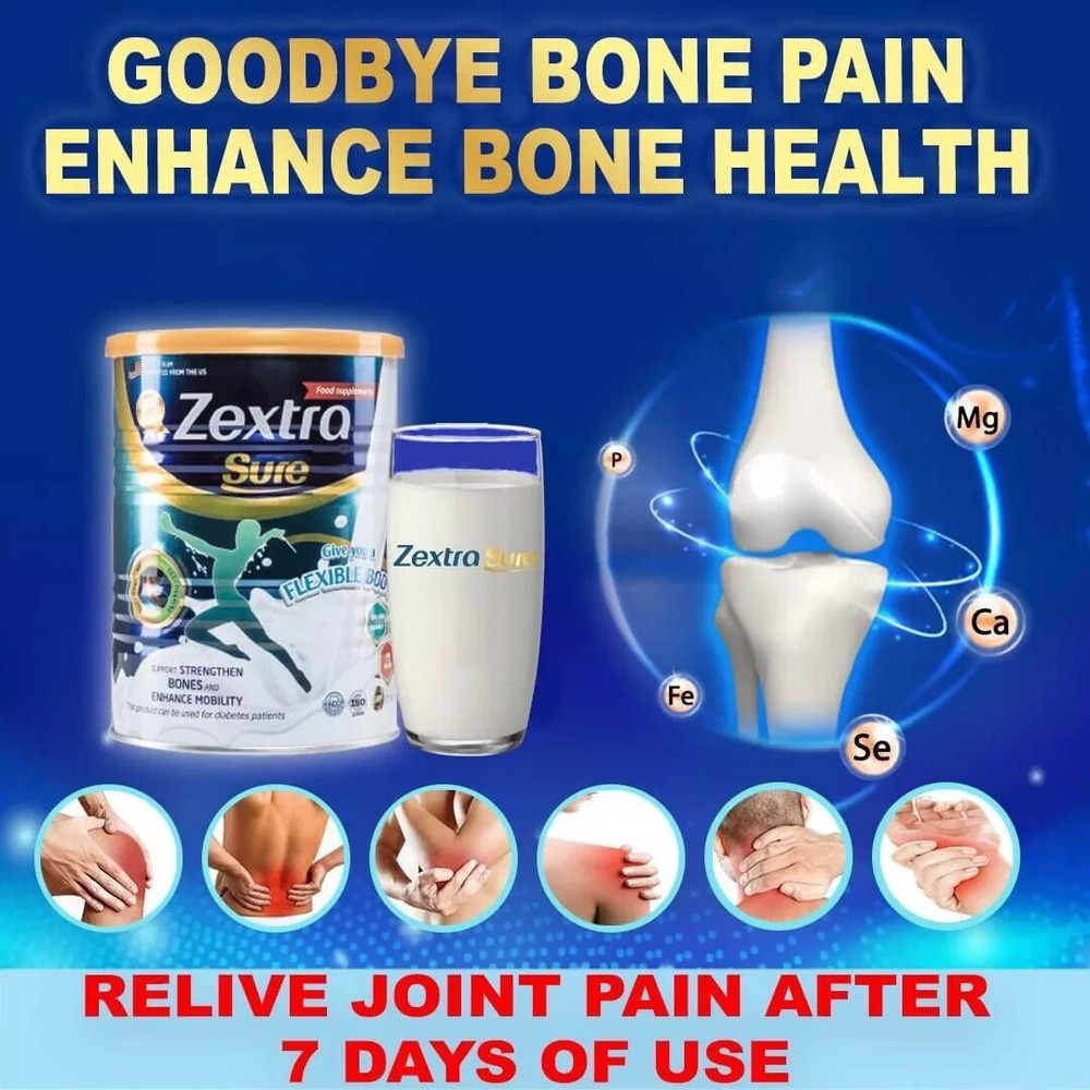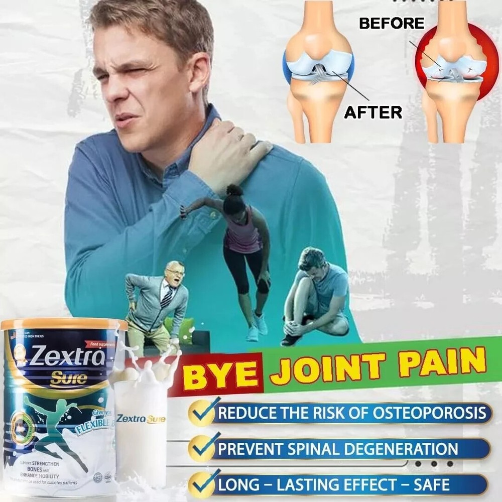 SHIPPED FROM USA 1 Can Zextra Sure Milk / Knee Pain Back Pain (400g) Back Pain Strengthen Bones. ⭐️Good for joints Contains 14 vitamins, minerals and a rich source of Omega 3-6-9 and Calcium for heart, brain and exercise. With Polycan® compound, it strengthens joint cartilage, reduces bone resorption rate and accelerates new bone formation ⭐️Recommended by Nutritionist Zextra Sure combines the golden ratio of Polycan® compounds that are clinically proven, GMP, HALA compliant and FDA approved in the USA. ⭐️2 cups per day After 14 days: The pain will slowly subside and nutrients will begin to focus on the painful area, flush out toxins and help reduce joint swelling and inflammation. Some people may be able to move around easily without pain. 👍 Authenticity Guarantee 👍 New and Unopened 👍 Best price and shipped from USA