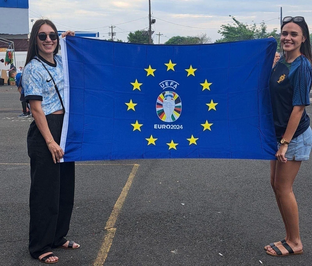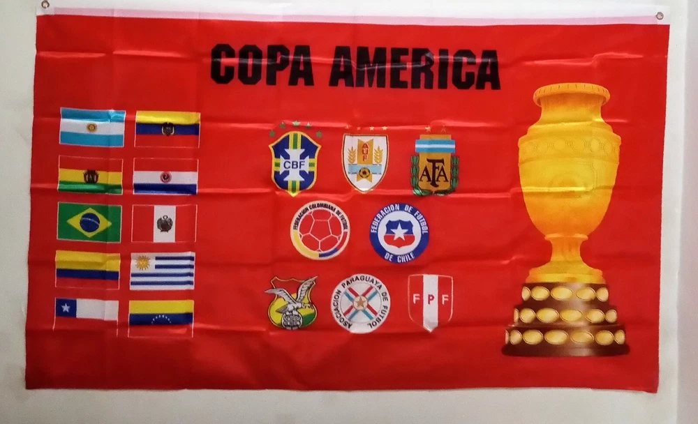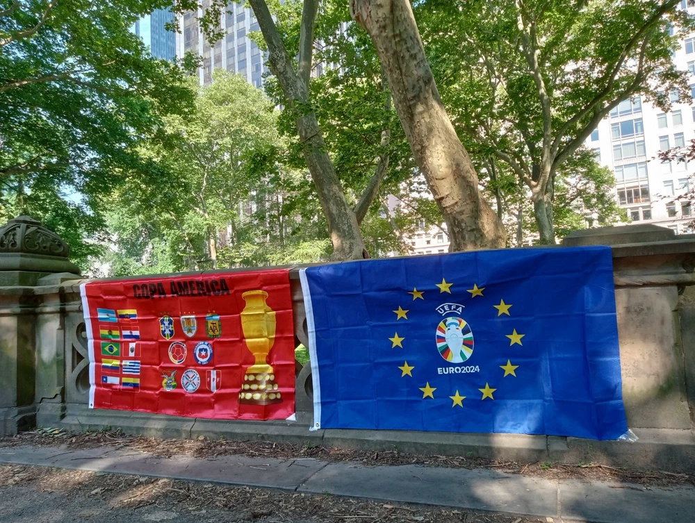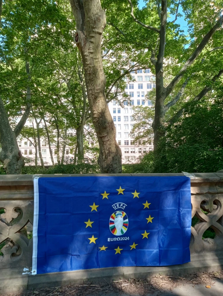 WELCOMING THE EUROPEAN AND AMERICAN NATIONAL SOCCER TEAMS TO THE 2024 EUROCUP AND 2024 COPA AMERICA: 2 AMAZING AND BEAUTIFUL FLAGS: 1 COPA AMERICA GENERIC FLAG (3X5 FT) + 1 EURO 2024 FLAG (3X5 FT) FOR ONLY $45.00 (TOTAL: 2 FLAGS) (MATERIAL USED: THICK POLYESTER FABRIC AND ALSO SATIN FABRIC IN COPA AMERICA) . NOTE: THE 2024-EURO LOGO IS VISIBLE ONLY ON ONE OF THE SIDES OF THE FLAG (DTF PRINTED IN NYC) . WHOLESALE INQUIRIES WELCOME. FREE SHIPPING.