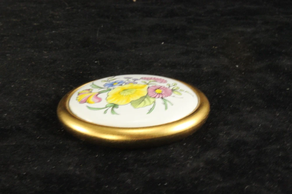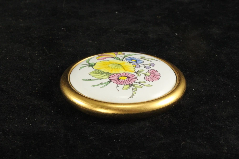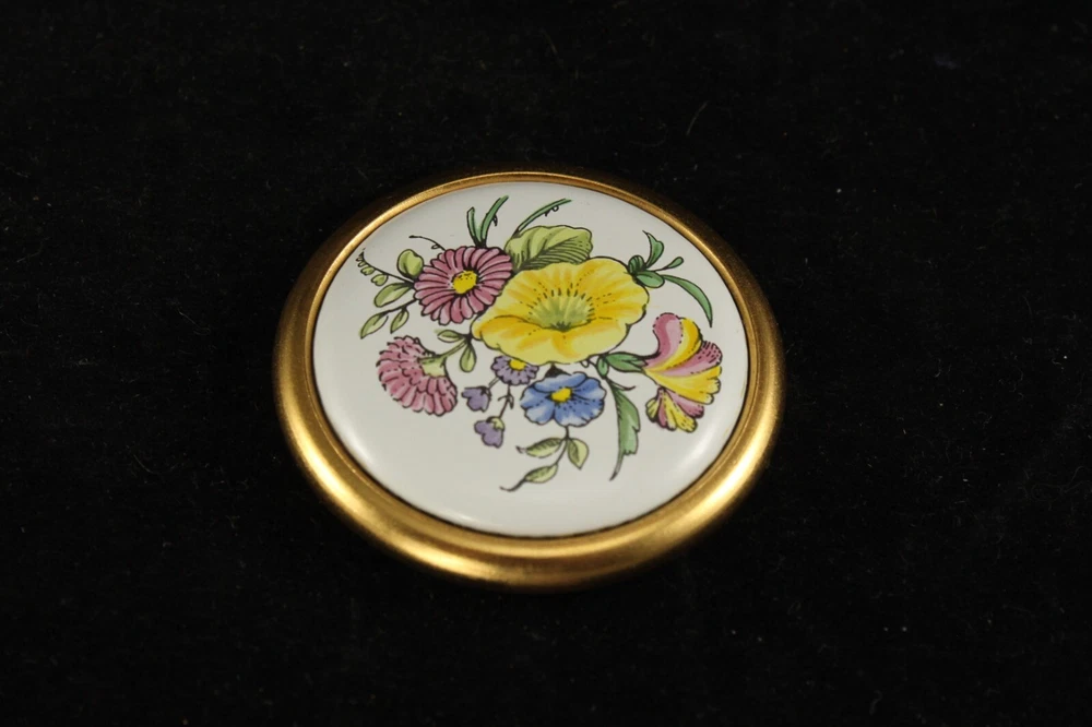 Here's a beautiful round disc-shaped paperweight with a floral design from Staffordshire, England . The piece is unmarked but is reminiscent of Kingsley or Staffordshire Enamels. The paperweight measures 1¾ inches in diameter and is ⅜ inch thick . It is in excellent condition with no damage or loss to the enamel and no discoloration to the brass finish. Please read the description carefully and review all pictures as they are a part of the description. All measurements are approximate. You may bid with confidence, knowing that if you feel I have misrepresented or inaccurately described any item you purchase from me, you may return it for a prompt, full, hassle-free refund. I ask only that you leave any security labels intact and give me email notice within 3 days of delivery. I pack very carefully and have shipped many hundreds of fragile items over the years, so rest assured that your items will arrive safely. Check out my other auctions for similar items. I will gladly combine multiple items into one shipment if possible in order to save you shipping costs. HEADS UP: Requirements have recently changed, and eBay's invoicing system will now automatically add State Sales Tax to invoices for many states regardless of seller's state of residence. Please see eBay Help or Google for more information. SHIPPING POLICY: In most cases I will ship the next business day after receiving cleared payment. Domestic shipping may be via UPS, FedEx or USPS. Alaska and Hawaii are more expensive; please inquire. INTERNATIONAL BUYERS: I ship internationally via eBay International Shipping. PAYMENT : I accept eBay Managed Payments and Paypal. Other payment methods by individual agreement. Payment must be received within 3 days of auction’s end . Please understand that the system automatically opens a payment case on day 4 if I don't receive payment from or agree to alternative arrangements with the buyer. I care very much about buyer satisfaction and strive for complete accuracy in descriptions and pictures. Please email with any questions. Thanks for your interest!