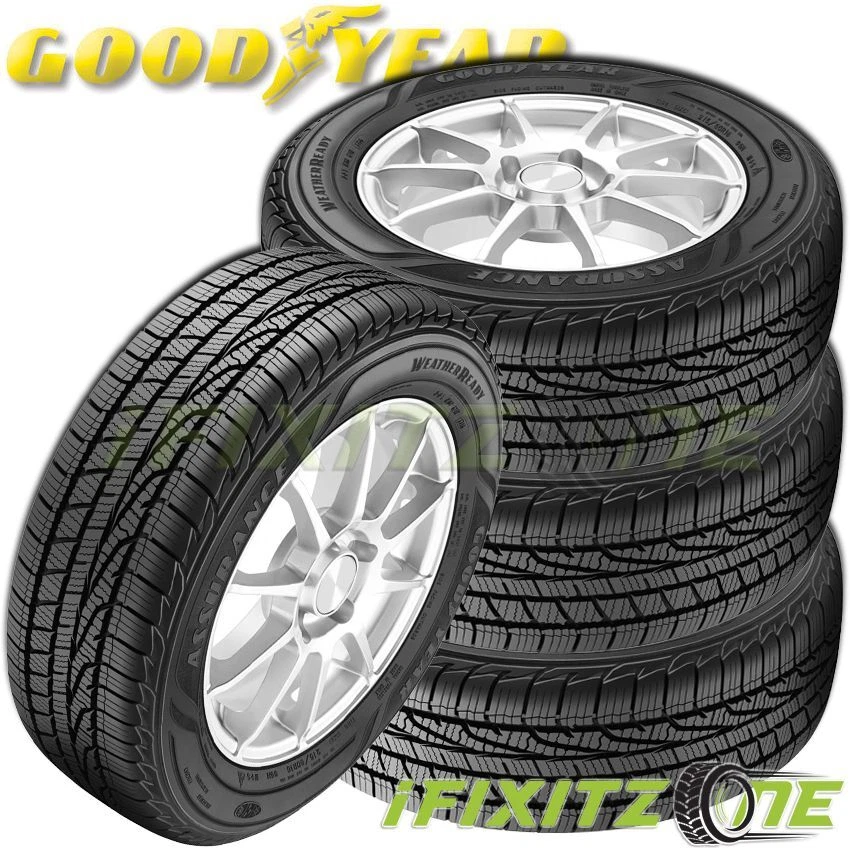 The Assurance WeatherReady is Goodyear's Grand Touring All-Season tire designed for drivers of family sedans, coupes, and cross-overs, SUV's and minivans who seek a smooth quiet ride of a premium touring tire combined with all-season confidence that comes from driving a vehicle equipped with tires bearing the Severe Snow Service Symbol. Also backed by Goodyear's 60,000 miles tread-life warranty. The Assurance WeatherReady features an asymmetric tread designed that provides stable cornering in wet conditions. The intermediate ribs of the Assurance WeatherReady features Zig-Zag biting edges that provide traction need for wet, or snow-covered roads. Internal construction of the Assurance WeatherReady utilizes a single-ply polyester casing, while two wide, steel belts support the tread area. ifixitzone