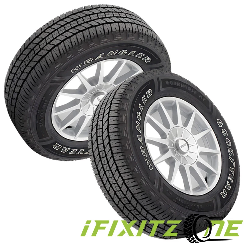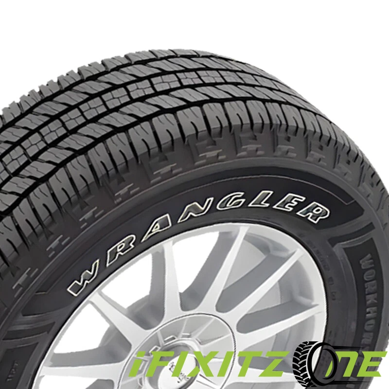 The Goodyear Wrangler Workhorse HT OWL is a highway terrain, all season tire manufactured for SUVs and light trucks. It has some commercial van sizes as well. The tire promotes great year-round traction with the all-season compound and detailed footprint. Circumferential grooves actively combat hydroplaning as well. Goodyear offers a 60,000-mile treadwear warranty. The Wrangler Workhorse HT OWL enhances load and driving durability with its stronger construction. The stable footprint’s better surface contact provides a smooth performance, by reducing vibrations. As the tire maintains its surface contact constantly, it greatly improves steering responsiveness and driving stability. Its braking distance is also decreased thanks to the sipe and groove pattern. ifixitzone