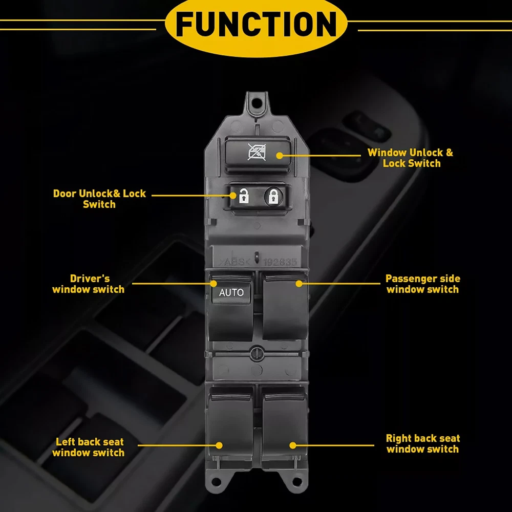 Product Description Power Master Window Control Switch For Toyota Corolla Camry Yaris RAV 4 84820-06100 Specfications: Type: Window Control Switch Condition: 100% brand new To Control: Window Color: Black Placement on Vehicle: Front Left Material: Plastic & Metal Features: Great product with premium quality. According to the original factory specifications. Perfect match for the original car. Easy installation. Stable performance, high reliability. Fitment: 2007-2012 For Toyota Camry 2007-2014 For Toyota Corolla 2008-2013 For Toyota Highlander 2009-2014 For Toyota Matrix 2006-2012 For Toyota RAV4 2012-2014 For Toyota Tacoma 2007-2012 For Toyota Tundra Part number: 84820-0D140 84820-06100 84820-02190 84820-12520 (to ensure 100% fit, please check your part number before buy) Package Includes: 1 x Window Switch Shipping Returns Contact Us Payment We ship most of our orders within 24 hours, and may up to 48 hours for. If you want faster shipping way. Please contact us before making payment. Sometimes due to problems with our transportation company system, your shipping information may be delayed to update. We recommend that you try again after 3-4 days. If you still haven't checked the shipping information, you can contact us by ebay message. Always believe we can figure things out with communication, if it comes to return, the pacakge must be intact and the same as you receive. If you have any questions, please feel free to email our service specialists 24 Hours a Day, 7 Days a Week. We will reply you ASAP. Return/refund is accepted within 30 days after the buyer receives the item. NO exchange will be accepted after 30 days from the date when the item is received. Please contact us first before returning your product!!! If you have any questions, our Customer Service staffs welcome you to email us. We strive to answer all questions and resolve any problems as quickly as possible. You can contact us 7*24, we will reply at the first time, and we will surely solve your problems. Note: 1.We try our best to reply to your emails as soon as possible, however, due to high volume of daily incoming emails and time zone difference, we may not be able to reply your emails immediately. Please allow 1 business days for us to response. If you do not receive any reply from us, please check your email ensuring your mailbox has not reached full size. 2.Due to some ISP SPAM filter settings, you may not be able to receive our replies; if you have problems receiving our emails, you may need to use a different email account to contact us. 3.Please give us the opportunity to resolve any problem. We understand the concerns and frustrations you might have, and will try our best to resolve the issues. Please email us before leaving any negative feedback or open any dispute on PayPal. 4.We care about our valued customers, and will always try to help you. So if you have any problems, please e-mail us immediately. We accept all verified payment from eBay. Shipping We ship most of our orders within 24 hours, and may up to 48 hours for. If you want faster shipping way. Please contact us before making payment. Sometimes due to problems with our transportation company system, your shipping information may be delayed to update. We recommend that you try again after 3-4 days. If you still haven't checked the shipping information, you can contact us by ebay message. Returns Always believe we can figure things out with communication, if it comes to return, the pacakge must be intact and the same as you receive. If you have any questions, please feel free to email our service specialists 24 Hours a Day, 7 Days a Week. We will reply you ASAP. Return/refund is accepted within 30 days after the buyer receives the item. NO exchange will be accepted after 30 days from the date when the item is received. Please contact us first before returning your product!!! Contact Us If you have any questions, our Customer Service staffs welcome you to email us. We strive to answer all questions and resolve any problems as quickly as possible. You can contact us 7*24, we will reply at the first time, and we will surely solve your problems. Note: 1.We try our best to reply to your emails as soon as possible, however, due to high volume of daily incoming emails and time zone difference, we may not be able to reply your emails immediately. Please allow 1 business days for us to response. If you do not receive any reply from us, please check your email ensuring your mailbox has not reached full size. 2.Due to some ISP SPAM filter settings, you may not be able to receive our replies; if you have problems receiving our emails, you may need to use a different email account to contact us. 3.Please give us the opportunity to resolve any problem. We understand the concerns and frustrations you might have, and will try our best to resolve the issues. Please email us before leaving any negative feedback or open any dispute on PayPal. 4.We care about our valued customers, and will always try to help you. So if you have any problems, please e-mail us immediately. Payment We accept all verified payment from eBay. You may also like For Boats 3/4 Inch Hose Bilge Pump Installation Kit With Thru Hull Drain Plug 14.07 USD 3.99 USD 50Pack Metal Car Speed Fastener Clips Screw U-Nuts Self Tapping Spring Plate 5.07 USD 3.99 USD 1 Pcs New Steering Wheel Spinner Knob Handle Durable Replacement Accessories 13.07 USD 3.99 USD Auto Car Oil Engine Cleaning Solvent Air Sprayer Degreaser Siphon Tool With Pot 21.07 USD 3.99 USD Replacement Car EGR Vacuum Solenoid Switch Valve 12V For Mazda MPV 1996-1998 9.07 USD 3.99 USD 2Pack Universal Car Truck Door Cup Mount Drink Bottle Holder Stand Durable; 6.07 USD 3.99 USD powered by