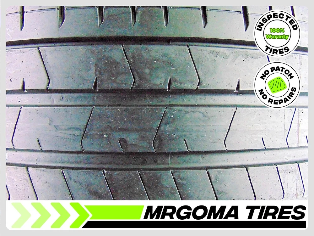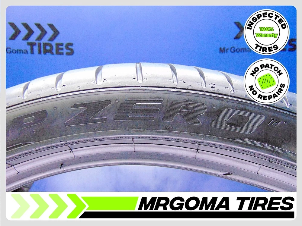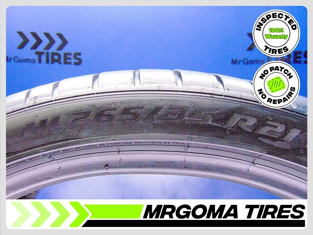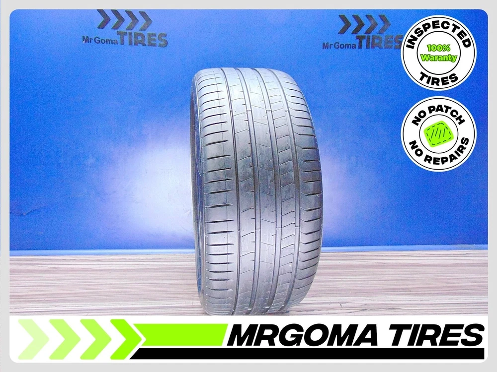 8.0/32 Tread Depth 88% Remaining life 2022 DOT/NO PATCH ACTUAL PICTURE OF ITEM 1 PIRELLI P ZERO PZ4 LM1 ELECT PNCS XL HL265/35R21 ACTUAL PICTURES OF ITEM Size: 265/35R21 Load/Speed Index: 103Y Tread Depth: 8.0/32 Remaining Life Remaining Life: 88% avg. Run Flat: NO DOT: 2322 Production Year: 2022 Product #: 236166 Patched: NO. No patches, no repairs FREE INSTALLATION (Local customers only) This tire comes brand new with 9.0/32 tread depth ACACTUAL PICTURE OF ITEM ACTUAL PICTURE OF ITEM ACACTUAL PICTURE OF ITEM