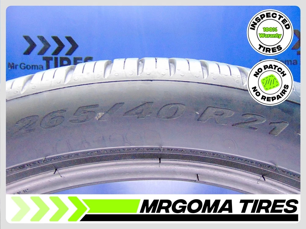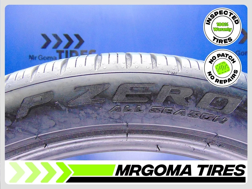 7.3/32 Tread Depth 73% Remaining life 2022 DOT/NO PATCH ACTUAL PICTURE OF ITEM 1 PIRELLI P ZERO A/S MOE-S ELECT PNCS RFT RSC XL 265/40R21 ACTUAL PICTURES OF ITEM Size: 265/40R21 Load/Speed Index: 105H Tread Depth: 7.3/32 Remaining Life Remaining Life: 73% avg. Run Flat: YES DOT: 2322 Production Year: 2022 Product #: 237689 Patched: NO. No patches, no repairs FREE INSTALLATION (Local customers only) ACACTUAL PICTURE OF ITEM ACTUAL PICTURE OF ITEM ACACTUAL PICTURE OF ITEM