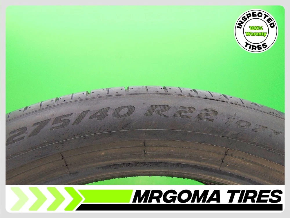 79% Remaining life 2023 DOT 107Y ACTUAL PICTURE OF ITEM 1 PIRELLI P ZERO TM PZ4 T1 ELECT PNCS XL 275/40R22 ACTUAL PICTURE OF ITEM Size: 275/40R22 Load/Speed Index: 107Y Tread Depth: 7.9/32 Remaining life Remaining Life: 79 % avg. Run Flat: NO DOT: 4123 Production Year: 2023 Product #: 103046 Patched: YES/1 patch only Lifetime warranty on patches ** Please call us ahead before showing up ** FREE PROFESSIONAL INSTALLATION (Mounting & Balance) Info WhatsApp (Text Only) : 305-999 5690 ACTUAL PICTURE OF ITEM ACTUAL PICTURE OF ITEM ACTUAL PICTURE OF ITEM ACTUAL PICTURE OF ITEM ACTUAL PICTURE OF ITEM