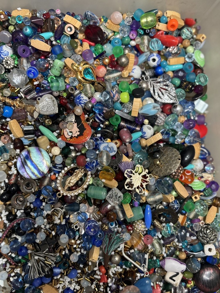 This product is a 1 pound assortment of beads in various colors, all made of metal with an iridescent finish. These beads are perfect for making jewelry and crafts, and also include charms for added creativity and decoration. With a wide range of colors and a metallic finish, these beads provide endless possibilities for creating unique and stylish pieces.