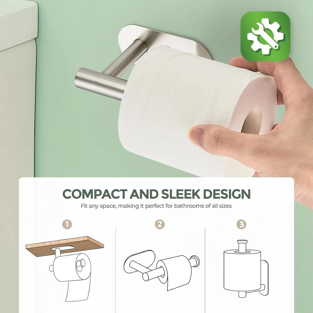 1 Pack Adhesive Toilet Roll Stand - Brushed Nickel SUS304 Description: Features: Easy Installation: Adhedive toilet paper holder come with adhesive tape no drilling ,you can install it easily with several minutes The choice of mounting direction is diverse,you can install in right or left ,horizontally or vertically Reliable Design: The adhesive toilet paper holder is made of SUS304 stainless steel with a brushed nickel finish, effectively resisting corrosion and rust even in wet conditions The knob at the end of the steel pipe prevents the paper roll from falling Size and loadbearing : The length of the adhedive toilet paper holder is 6.22 inches, and the distance to the wall is 2.56 Inch .It can hold paper towels of almost all thickness sizes. And it has a super endurance and can withstand 2.5 kg Versatile Use: Fits tile, glass, marble, or metal surfaces in bathrooms, kitchens, or living rooms. The simple design suits all decor styles, adding function and a clean look. Not suitable for painted walls, textured plaster, wallpaper, or brick surfaces Customer Support: We believe you'll appreciate your adhesive toilet paper holder. If you encounter any issues within the first 100 days, please reach out, and we'll resolve them as quickly as possible SHIPPING: We are always working hard to ensure your package arrives as soon as possible. Please understand that some factors like weather, high postal traffic, and the performance of shipping companies are outside of our control. We offer free shipping to the lower 48 states and ship within 3 business days of payment, usually sooner. We do not accept P.O. Boxes. Please provide a physical address. For shipping outside of the continental USA, we only use eBay's Global Shipping Program. The item is shipped to KY and then sent to the rest of the world. International customers are responsible for all duties and taxes. Continue to check out in order to calculate costs for shipping the item to your country. Messages regarding eBay's Global Shipping Program MUST be directed at eBay EXCLUSIVELY. PAYMENT: We accept payment by PayPal only (Can accept all kind of credit cards). Please pay as soon as possible after winning an auction, as that will allow us to post your item to you sooner. Payment must be received within 3 business days of auction closing. Before buying, please make sure your PayPal and eBay address is correct. If not, please correct it before payment. We have confidence in our products, but if you are not fully satisfied please contact us within 30 days of purchase and you will get full refund of your money. Return the product in the same condition you received it. Please note - return shipping will be paid by the buyer.