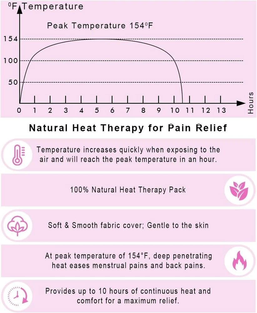 ✅ 【Fast & Effective Pain Relief】– Air-Activated Self- Heating pad features an innovative ultra-heat technology to provide up to 10 hours of continuous heat and warming comfort to relieve the menstrual cramps and associated abdominal pain or backache. Stick on the Clothing. For All Skin Types. This new packaging contains 1 pack of 5 pads. ✅ 【Largest, Warmest Patch for Max Pain Relief】– Long & Wide enough (19 x 10 cm = 7.5 x 4 inch) to cover the uterus fully in the temperature of 131-154°F or 55-68°C for maximum pain relief. The ultraheat deeply penetrates to the inner lower abdomen to help the blood flow and relax the uterine muscles. Great for abdominal cramps or lower back pain. ✅ 【Comfy, Cozy & Safe】- An ultra-thin design conforms to your lower abdomen so that you can hide it under clothes. They are comfortable to wear, self adhesive and stay in place on clothing. 👉 Do NOT ATTACH ON THE SKIN. STICK ON THE CLOTHING instead. Must remain attentive while using and check the application area every 2 hours to prevent burns. ✅ 【Natural Remedy for Menstrual Cramps】– Non-medicated, Air-Activated, Odor-Free heating patch is formulated with iron powder, carbon and ginger. Just open the pouch; the wrap starts to warm on its own then peel & stick it on clothing. Stop taking pills or medication for menstrual pain relief, try the hot patches instead. 👩👧【Make Your life Easier】–These period heating pads are Comfortable, Disposable, Discreet, & Portable. Great for working, travelling or on the go. Don't let menstrual cramps hold you back. Care me Menstrual Patches are Must-Have for Your Special Days of the Month.