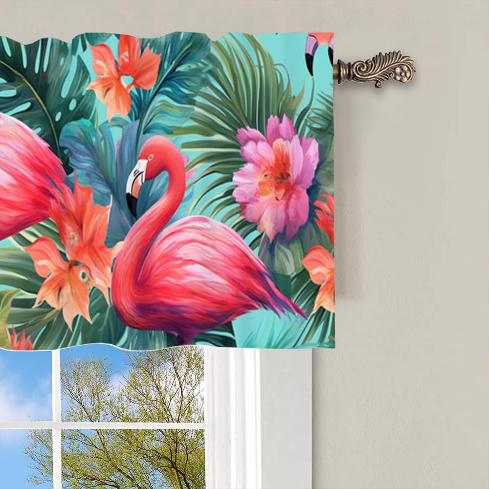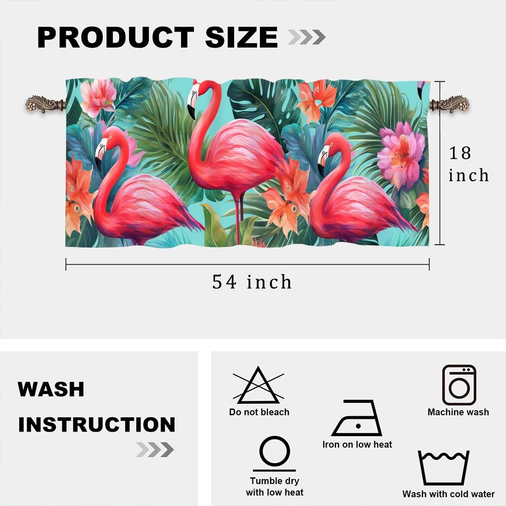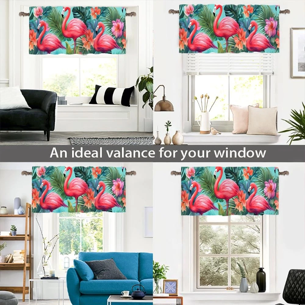 Welcome to our store We are specialized in including but not limited to curtains, such as table runners, rugs, valances, kitchen curtains, shower curtains, sheer curtains and blackout curtains. We offer variety of patterns add a unique luxurious view to your home, bedroom, living room, dining room and other rooms. High quality window curtains are suitable for any house style, very suitable for modern, classical, antique, vintage, contemporary, trendy home decoration. These awesome Blackout Curtain Panels are your perfect home guard. Keep the light out and help to retain the warmth in winter and keep the cool in the summer.High performance on blocking out full light, UV prevent and furniture protection, bring the uniform style indoor of your house. Package Includes: each valances for windows measures 54 inch width by 18 inch length, 3 inch rod pocket window valances can fit up to any standard basic or decorative rods. Can be used as Kitchen Bathroom Bedroom window valances curtains. Premium Fabrics: Our Room Kitchen valance curtains are made of High-quality soft texture fabric, It can black out sunlight, UV rays from window top, protect your furniture and floor from damage. Also maximize your own privacy to ensure you a good night’s sleep. Multiple Application: Abstract Flamingo Kitchen Windows Decor Curtains can be combined with coordinating tier curtains. They work well with many decorating like French Country Style, Modern Farmhouse Style. It can also be a perfect housewarming gift and holiday gift for friends, parents and neighbors. Wide Compatibility: A variety of exquisite patterns to choose from, and can be hung alone or mix with other curtains. They are suitable for kitchen, laundry, cabin, RV, dinning room, basement, bedroom, living room, french door, nursery, infant, closet, bathroom, room divider, camper and any small windows. To make a light, airy and privacy look. Care instructions: Good quality finishing will withstand years of use. Effortless care, saving time and energy. Machine washable and Wash the water temperature below 86F. Don’t use sharp things scratching curtains.