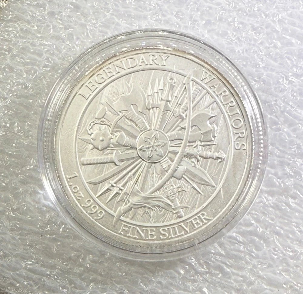 1 Troy oz Achilles Design .999 Fine Silver Round w/capsule