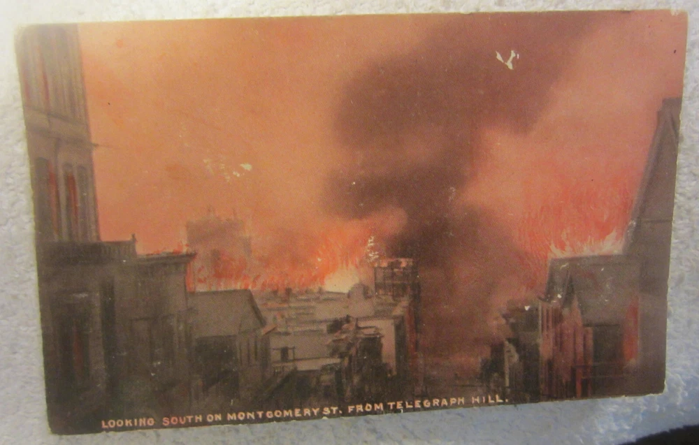 1 city fire San Francisco CA Looking South on Montgomery St. Vtg postcard