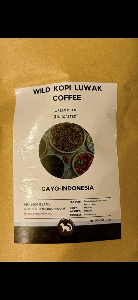 Robi’s Kopi Kingdom is now under the umbrella company “Cloud 9 Coffees!” ETHICALLY SOURCED (no harm to animals) AND 100% AUTHENTIC. YOU GET WHAT YOU PAY FOR! UNLESS OTHERWISE SPECIFIED, FRESH (MEDIUM) ROASTED COFFEE WILL BE SHIPPED via FedEx 2-day ON THE THIRD DAY AFTER ORDER! PLEASE MAKE ALLOWANCES FOR THE PROCESS. INTRODUCTORY OFFER: 50% DISCOUNT! This offer is not available on my other selling platforms. I am providing it as a way to promote eBay sales and establish my brand as a leader in the industry. The $250 price will be available for the first six pounds sold. The price will increase to $400/lb (20% savings) for the next six, then revert back to regular list price of $500 per lb. for subsequent shipments. At this price for a 1lb. bag, my margins are around 6-7% profit after international shipping, tariffs, eBay fees, equipment, processing and packaging, and delivery costs. My hourly wage per order amounts to $5-6/hr. In addition to the other sizes I’m selling (at a net loss), I will earn virtually nothing for this entire shipment. From my end, I am practically giving away this coffee to establish a solid reputation and brand recognition. For long-term success, there are no good shortcuts. Prices will soon increase when new shipments arrive. After the next shipment, prices will increase to normal selling price: $500/lb PLEASE READ CAREFULLY!! MESSAGE SELLER TO INDICATE DESIRED ROAST LEVEL! I start with 19.2 oz of green coffee. Medium roasted beans lose approximately 15% of volume—hence, 19oz green coffee yields 1lb (16oz.) of medium roast. I recommend light, light-medium, or medium roast. If you want medium-dark or dark roast (NOT recommended), expect to lose 0.4 ounces due to moisture loss—yielding 15.6oz per order. INDICATE WHETHER YOU WANT WHOLE BEANS OR GROUND COFFEE AND SPECIFY BURR-GROUND or BLADE-GROUND (burr-ground is recommended). NOTE: ground coffee will lose an additional 1-2% volume—approximately 1/4 oz). Cloud 9 Coffees and Robi's Kopi Kingdom (private labels under American-Indo Versatile Merchantile, LLC—100% positive feedback and recognized for excellent customer service) believes in full disclosure. Our business model requires that we are open and honest in all our dealings. Anything more than the truth is too much! We are proud to present our first offering—100% Certified Wild Harvested Kopi Luwak—100% Arabica coffee beans from Indonesia, specifically from Gayo Highlands region of Aceh Province on the westernmost island of Sumatra, Indonesia. Some eBay sellers are offering 1lb for much less than 1/3 of wholesale prices. This indicates that there is a problem. Other sellers’ false, errant, or ambiguous listings show that they know little to nothing about this premium coffee. They ARE NOT my competitors, as they don’t even belong in the same category! Don’t settle for fake (or blended—some use 20% authentic—usually caged— and label it “kopi luwak”), lower quality (robusta) , or old coffee. Beware of Vietnamese “Asian Palm Civet” coffee that is labeled “luwak.” It is made from the much lower quality robusta beans, are taken from caged animals, and the taste is not comparable to pure Indonesian Arabica beans from Sumatra, Aceh, and other regions. If you simply want to boast to others that you drink Kopi Luwak or want to buy it as a “gag” gift, go for the cheaper options, knowing that you are providing a disservice to aficionados and anyone else who is serious about the industry. Otherwise stated, don’t waste your time. Go to a flea market or just buy a can of Folgers. If you have a discerning palate and appreciate the finer things in life, this coffee is for you! I am not aware of any other purveyors in the United States who roast Kopi Luwak fresh to order, so I consider myself an original and innovator in a niche, competitive, yet ever growing market. I don’t strive to be the biggest, just the best. I first experienced Kopi Luwak in Bali in 2019. Since then, I have only had ONE cup of “commercial” coffee. Subsequently, I have become a connoisseur and aficionado, experimenting with different exclusive beans, roasts, and brews. Like a good wine or micro-brewed beer, some things justify the expense. Customers can expect the pinnacle of quality coffee experiences with this roast-to-order Kopi Luwak. The coffee will be roasted medium and sent as whole beans unless otherwise requested. Our Kopi Luwak is wild harvested (NOT obtained by force-feeding farmed or caged animals). The coffee beans are Fairtrade certified with an expiration date of 11/2027. Green coffee lasts 18-24 months when stored in a temperature and humidity controlled environment. Once roasted, it is best used within six weeks of process before it starts to lose its subtle characteristics. For this specific reason, it is imperative that the kopi luwak be delivered as fresh as possible. This specialty coffee is known for its unique production process involving Asian civet cats (luwaks). These animals are very discerning; they consistently choose uniform sized, highly aromatic berries at peak ripeness, ensuring premium flavor. This results in the most highly sought-after and luxurious brew. By roasting to order, we GUARANTEE the freshest coffee possible. Each and every order will be roasted individually in quantities no greater than 1 pound. By roasting in small batches, we ensure consistency from our single-origin sourced coffee. One day after order, the coffee will be inspected before roasting. Then, it will be roasted, initially cooled in a special coffee bean cooling device, de-chaffed, then naturally further cooled and de-gassed (70-80%%) for 24 hours. On the second day after order, it will be de-chaffed again, then sealed in our resealable, special one-way de-gassing bags to complete the process. On day 3, it will be prepared and shipped FREE via FedEx 2-day Express. Overnight shipping may be available at the buyer’s request and expense. Since co