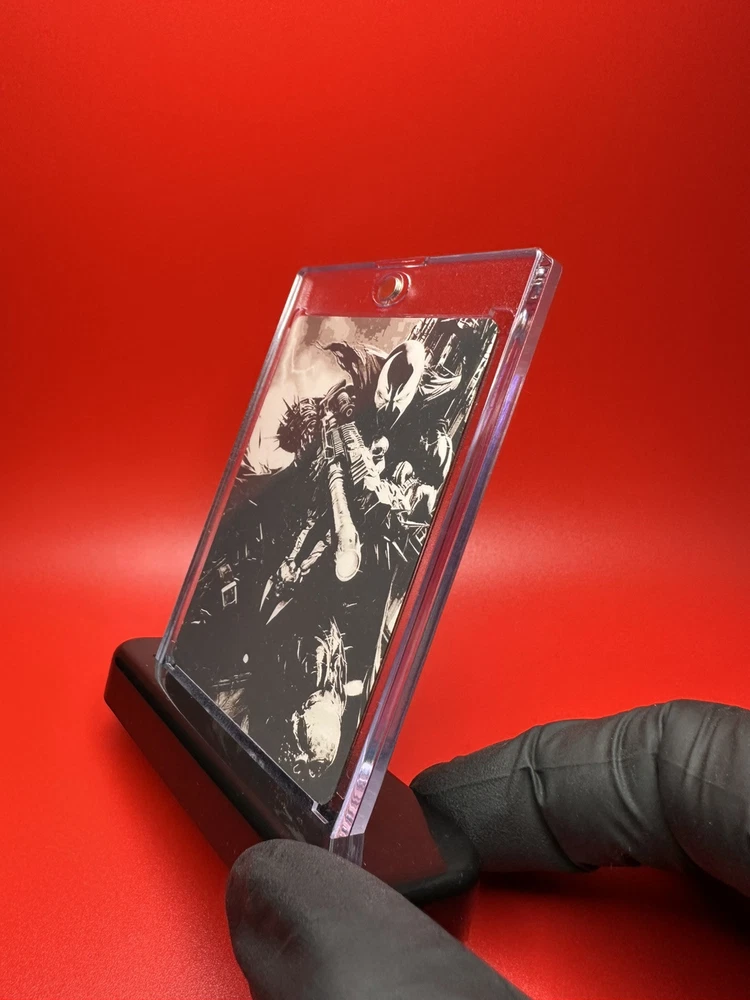 NEXUS MINT Presents - Spawn 1 oz .999 Fine Silver Card (1 of 1) We are thrilled to announce a significant enhancement to our image resolution for our laser engraving process. Our dedicated team has pushed the boundaries of innovation to deliver a product that exemplifies sophistication and precision like never before. Prepare to be amazed as our laser engraving technology now boasts an extremely high resolution, ensuring every intricate detail is captured with stunning clarity. Each Nexus Mint Silver Card is a masterpiece, meticulously crafted from the finest .999 pure silver and engraved with a level of detail that will leave you in awe. Introducing our latest innovation: the Reverse Side Boast with a stunning "Frost Silver finish". After extensive testing and development, we are proud to present the new frost texture that takes our craftsmanship to astonishing heights. This addition showcases our commitment to excellence and luxury. The reverse side is meticulously engraved with essential details, including the Nexus Mint logo, weight, purity, and an exclusive mintage. This unique feature ensures that each piece is truly a one-of-a-kind art piece. What sets our silver card apart is the innovative and advanced laser engraving process employed, representing the pinnacle of our craftsmanship. This cutting-edge technique allows us to capture and replicate images with unparalleled clarity and finesse, surpassing traditional methods and setting a new standard in precision engraving. Whether you're commemorating a special occasion, gifting a luxurious keepsake, or adding to your collection of precious metals, our Nexus Mint Silver Cards are the epitome of elegance and quality. Expect nothing less than perfection as you hold a piece of art in your hands, reflecting our commitment to excellence and your discerning taste. Elevate your collection today with the Nexus Mint .999 Fine Silver Cards – where every engraving tells a story of precision and beauty. Don't miss out on experiencing the pinnacle of laser-engraved silver cards. Order now and see the difference for yourself! Card Highlights: - Metal content: .999 Fine Silver - Approximate weight: 1 oz ( However, the weight of each card may vary slightly due to material being removed in the laser engraving process.) - Dimensions of the card: 2 1/2 x 3 1/2 - 0.02 Inches (0.51mm) thickness - Exclusive mintage: 1 - Packaging includes: Spawn 1 oz .999 Fine Silver Card (1 of 1) Ultra clear slab to handle and showcase the fine silver card (35pt card) (SEALED) One-Touch stand to display the fine silver card Trading card protectors Bubble wrapped At Nexus Mint our top priority is our customers. We are dedicated to ensuring that every customer service experience we offer is second to none. Our business is built on the premise of community engagement. We therefore thrive to promote and maintain an interactive environment that facilitates positive relationships with our customers. We hold our products to a high standard and each product must satisfy our quality assurance test. For us every single detail matter, from packaging to the production of the actual fine silver card. We aim to produce products that are innovative, timeless and of high quality. We're always happy to help! for questions regarding your order please don't hesitate to ask. Count on Nexus Mint for all your premium, fine silver and gold cards, bars and coins.